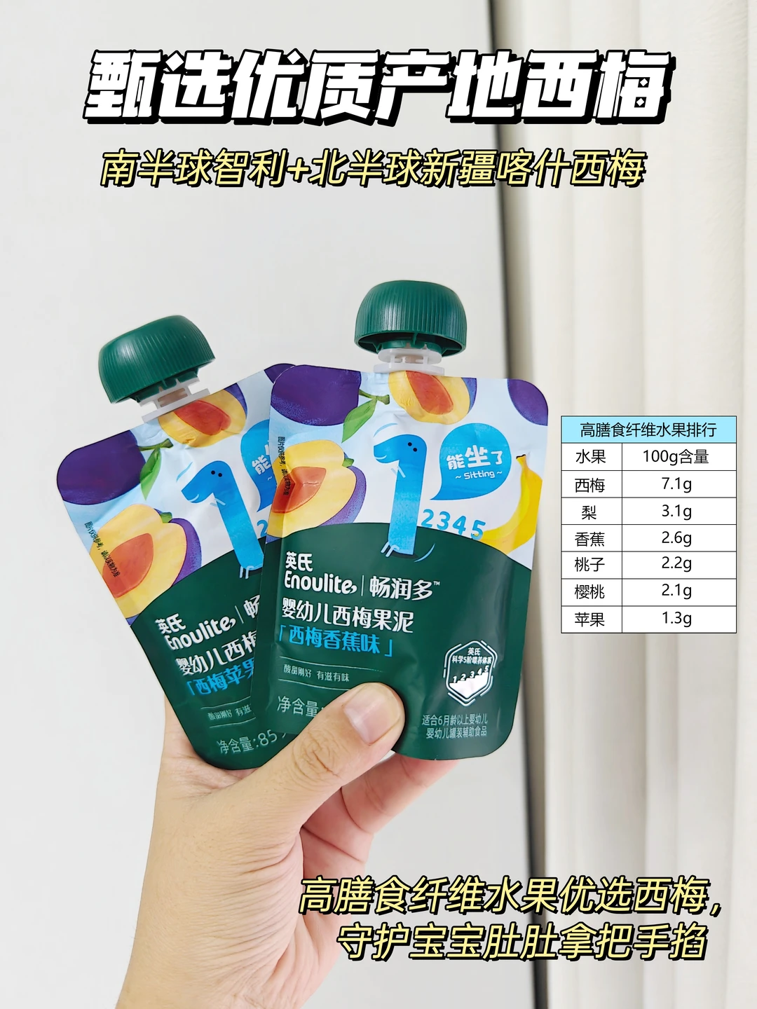 2⃣约7 - 9 月,2 阶果泥自带小果肉颗粒,很适合这时候爱咬东西的宝宝;