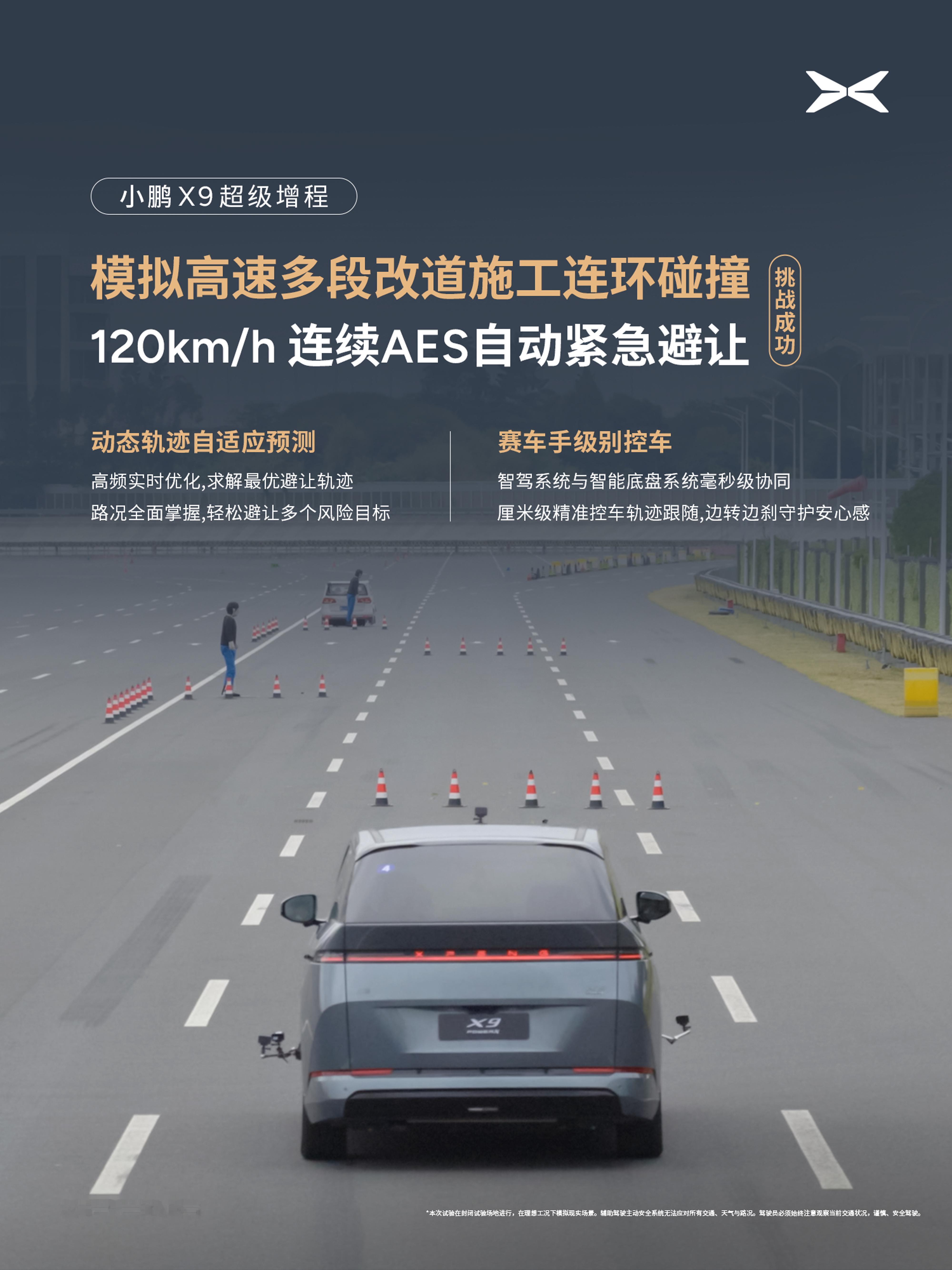 小鹏X9超级增程这硬核测试真的是一波接着一波,刚刚经历了极端全场景爆胎测试全胜后,这次又完成了突破。 小鹏X9超级增程全球首次「高速行车两大常见高危险情」 主动安全避让挑战成功!还是在模拟120km/h高速下,成功实现了"前车抛锚多车连环追尾"与"多段改道施工路段连环碰撞",安全感满满