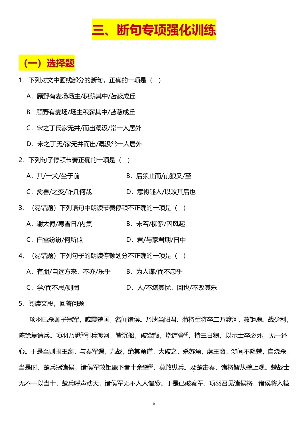 📚 20道高频真题和答案 老师精选了近 3 年各地考试的20道高频断句或划分句子结构的真题,覆盖各个考点,练好这20道,考试遇到就稳稳拿分!