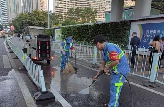 近日,在越秀区环市东路花园酒店附近,一辆轿车撞上护栏,导致汽油泄漏污染路面,并引发交通拥堵。正在附近作业的环卫工人杜海潮发现后,立即呼叫班组同事并调派电动扫路车赶赴现场支援。在交警的统一指挥下,环卫工人们默契配合,设置警示标志,利用泥沙吸附路面汽油以防滑,并迅速进行清扫和冲洗作业。仅用时15分钟,便成功化解险情,恢复道路畅通。