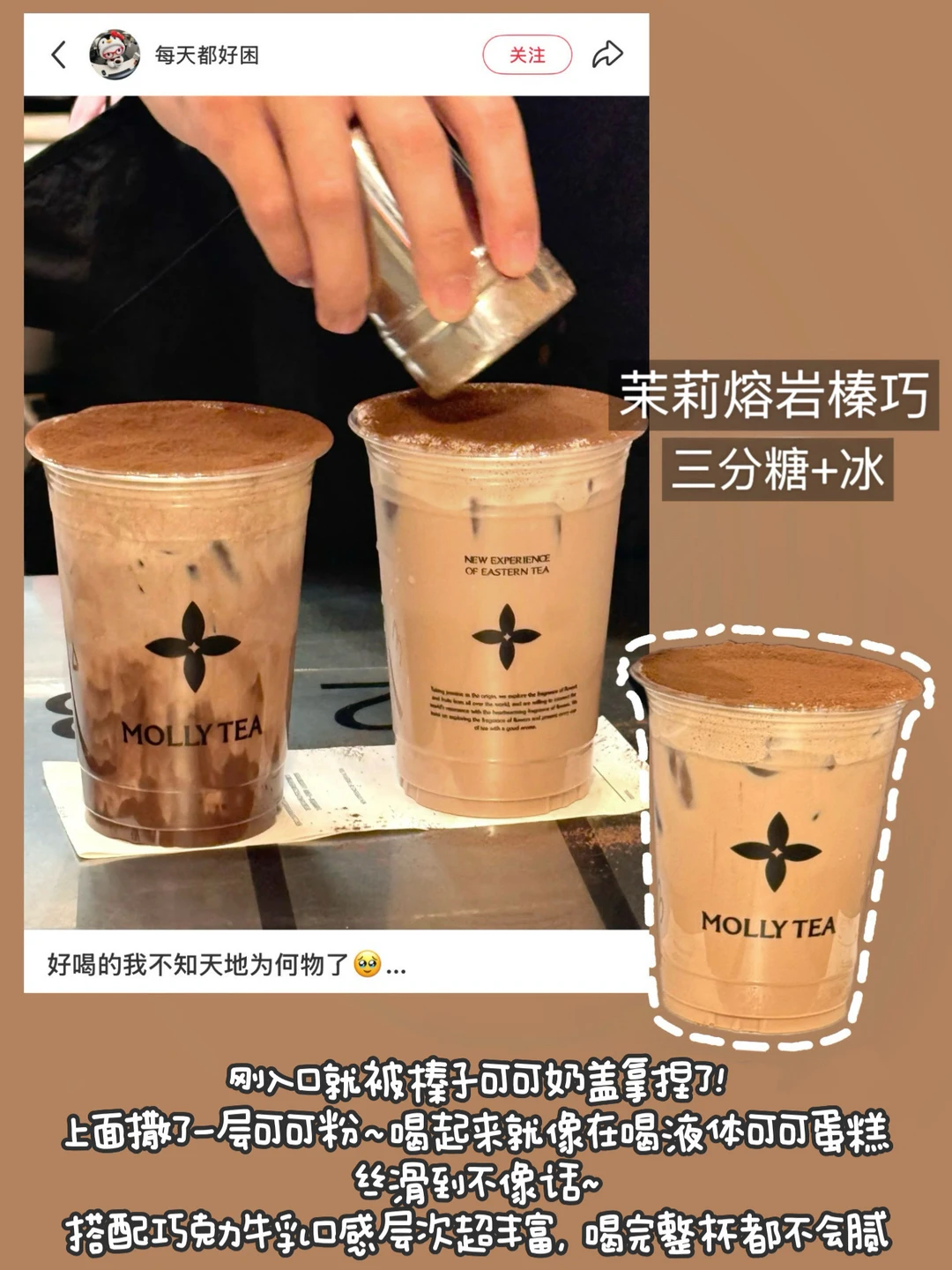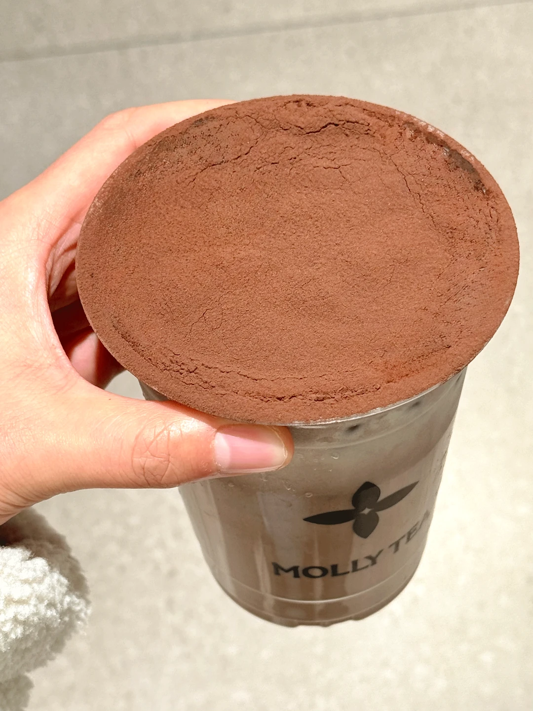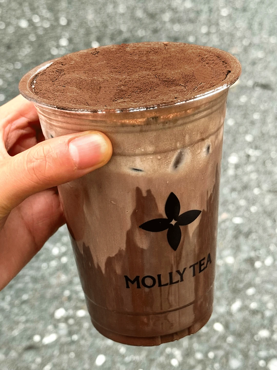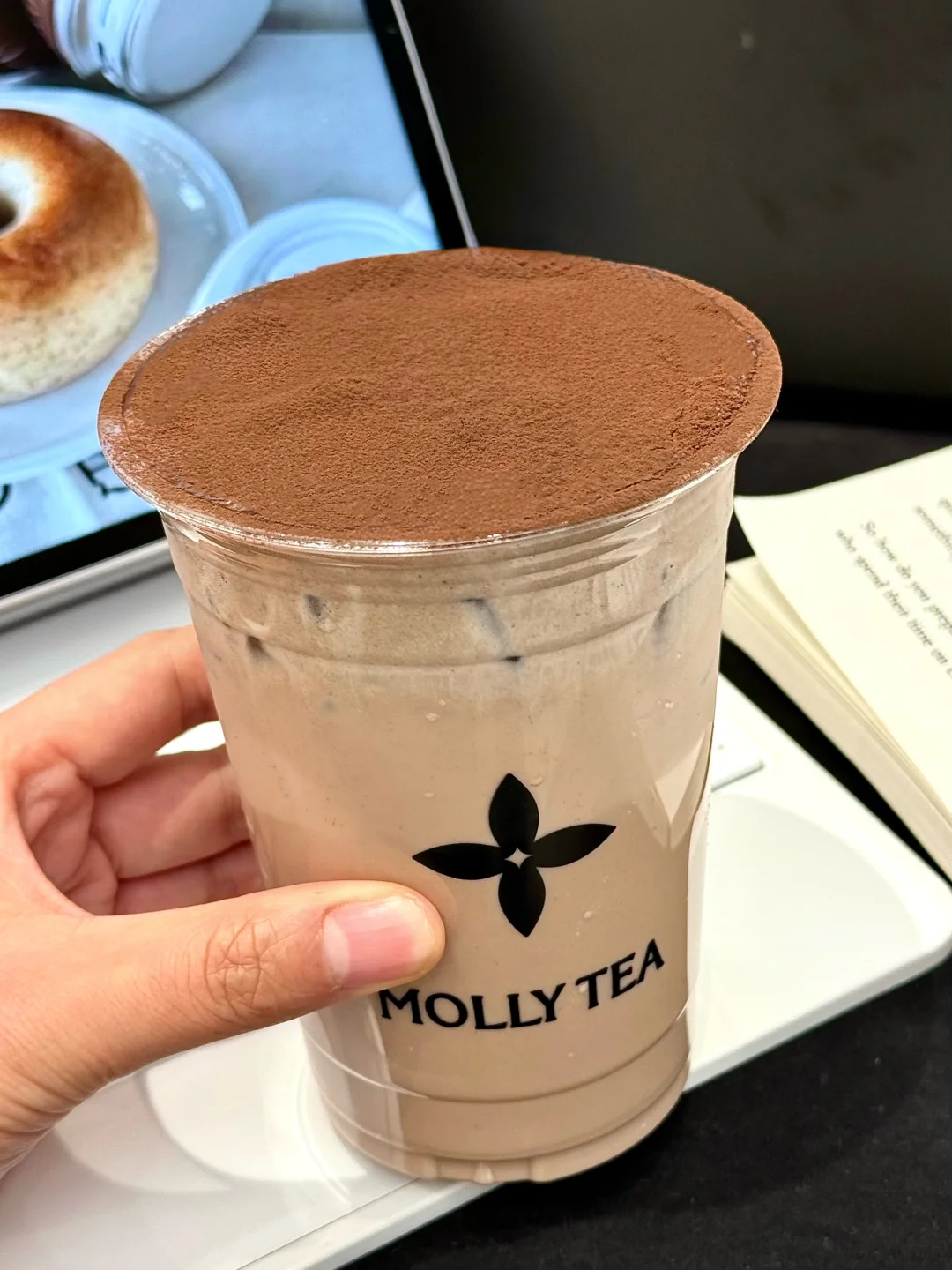 上面撒了一层可可粉~喝起来就像在喝液体可可蛋糕🍰!丝滑到不像话~