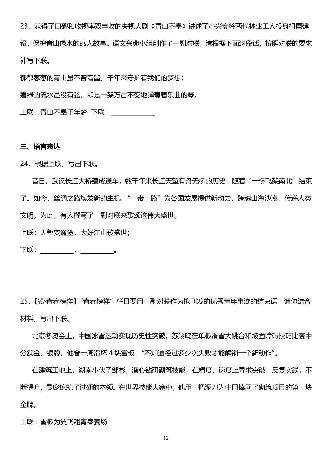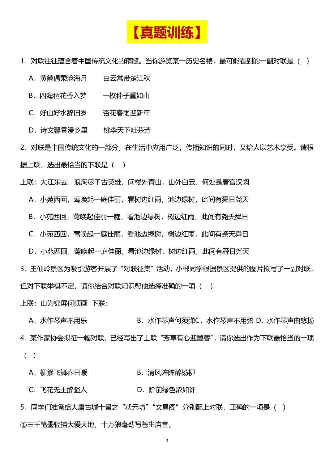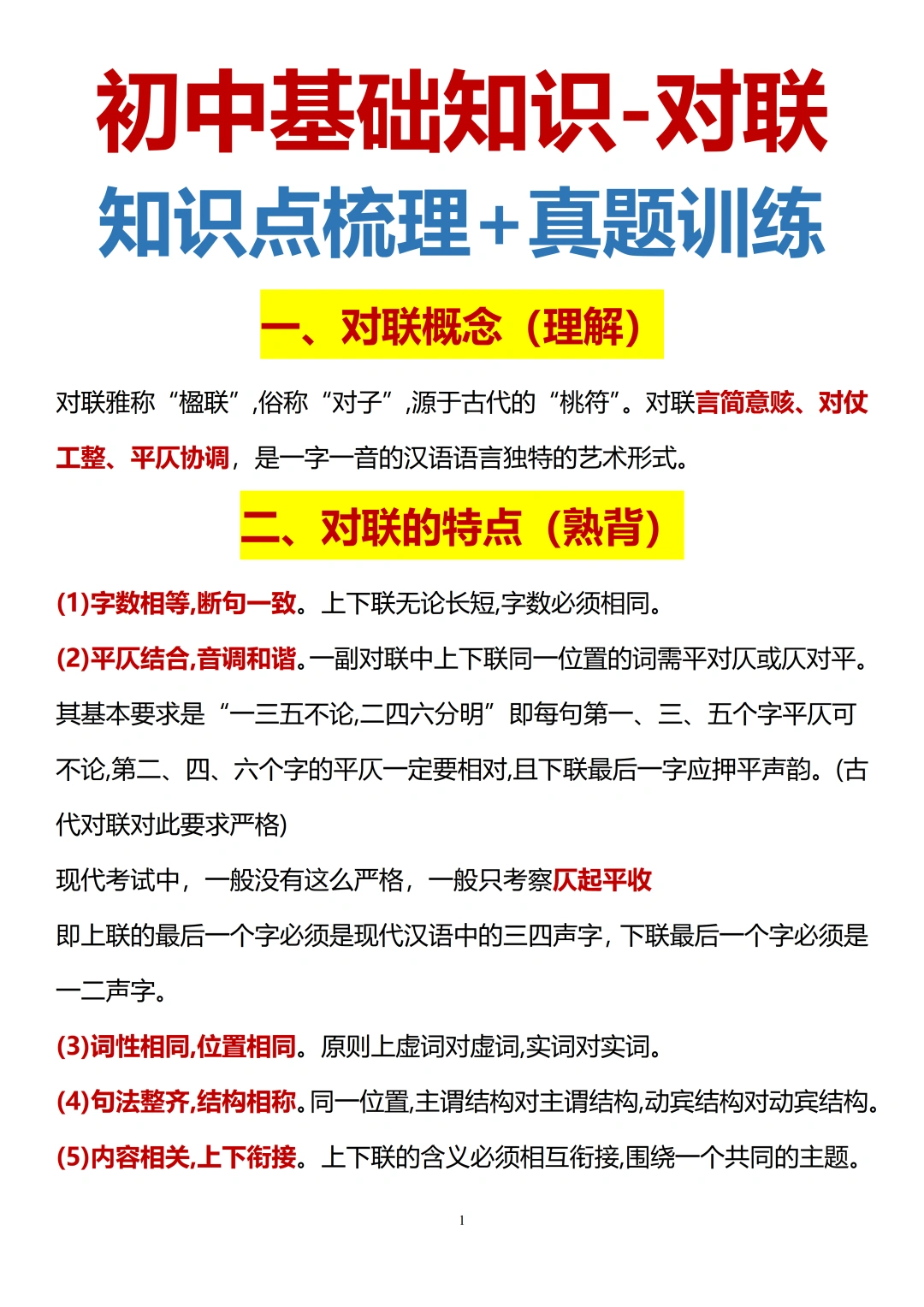 [向右R]因此我给大家汇总了初中语文的对联知识点和专项真题训练,学好这5大原则,对联题就不会扣分!