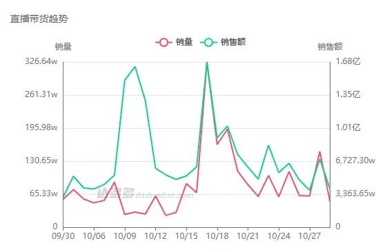 另外,据第三平台不完全统计,10月9日—10月31日,与辉同行直播间累计销售额已超18亿元。