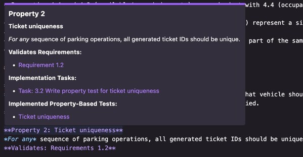 基于属性的测试(Property-basedtesting,PBT)则正为解决这一挑战而生,它能够通过检测代码是否符合规范定义的行为来解决上述问题。与测试具体示例不同,Kiro会深入分析项目规范,提取出代表系统应有行为的通用属性,并据此进行验证。