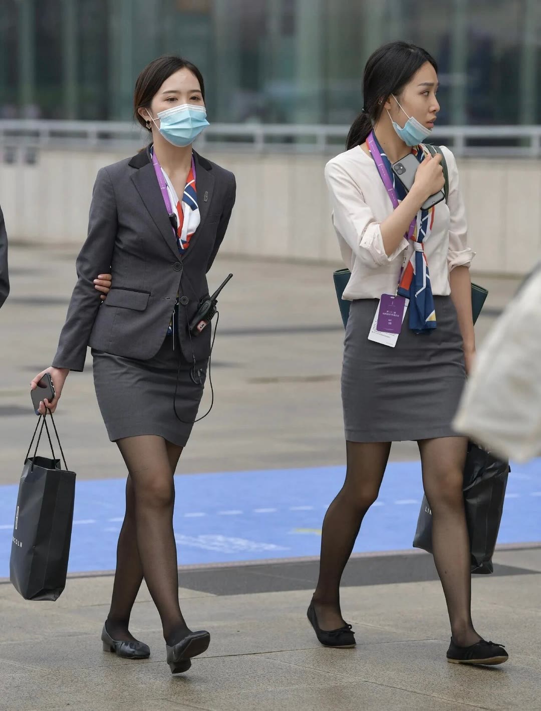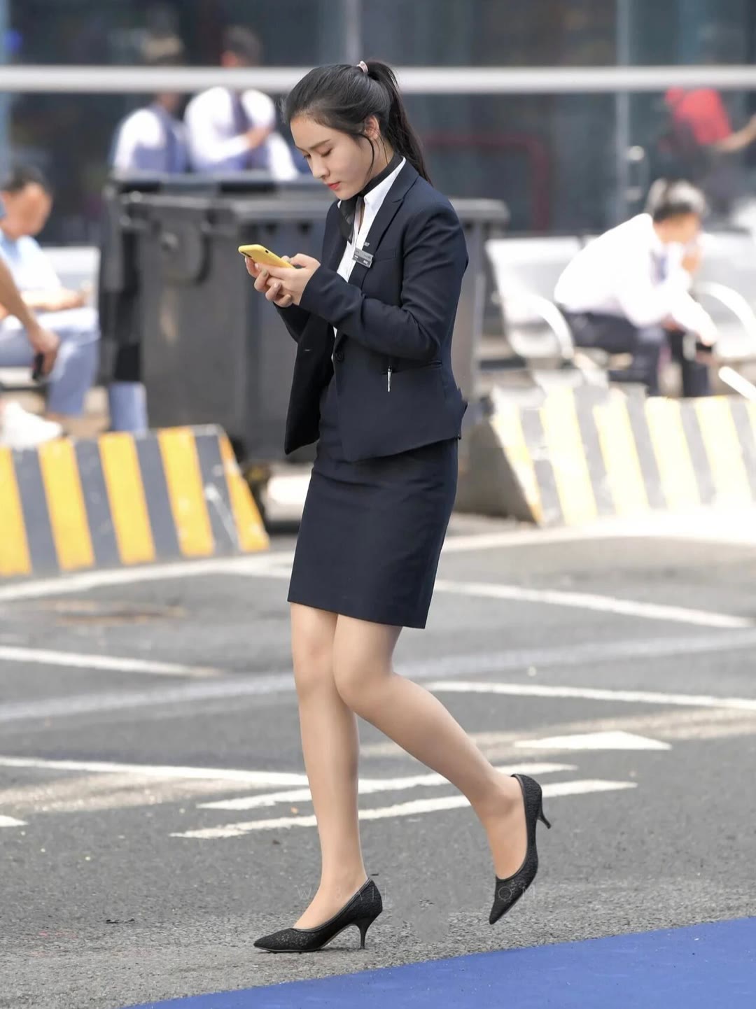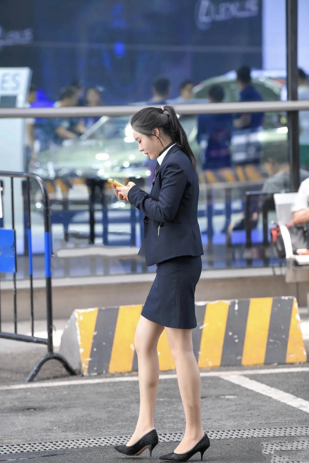 穿丝袜的礼仪小姐,这气质真绝了!烟灰色的职业装怎么样?