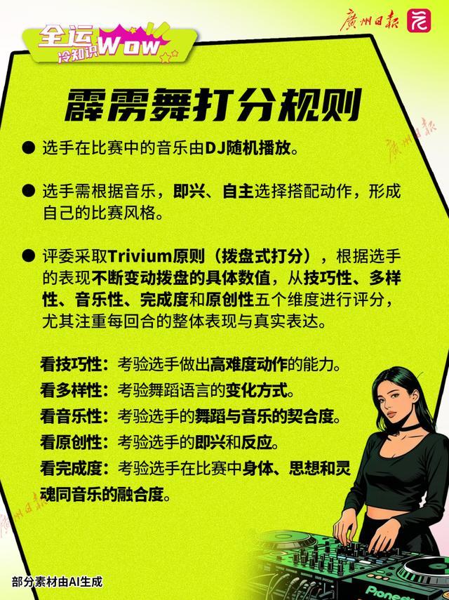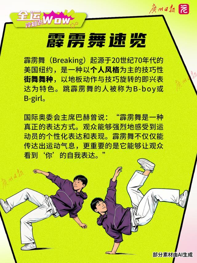 《全运冷知识Wow》最后一期聚焦霹雳舞。霹雳舞是一种以个人风格为主的技巧性街舞舞种,强调即兴、高难度的技巧旋转与地板动作。