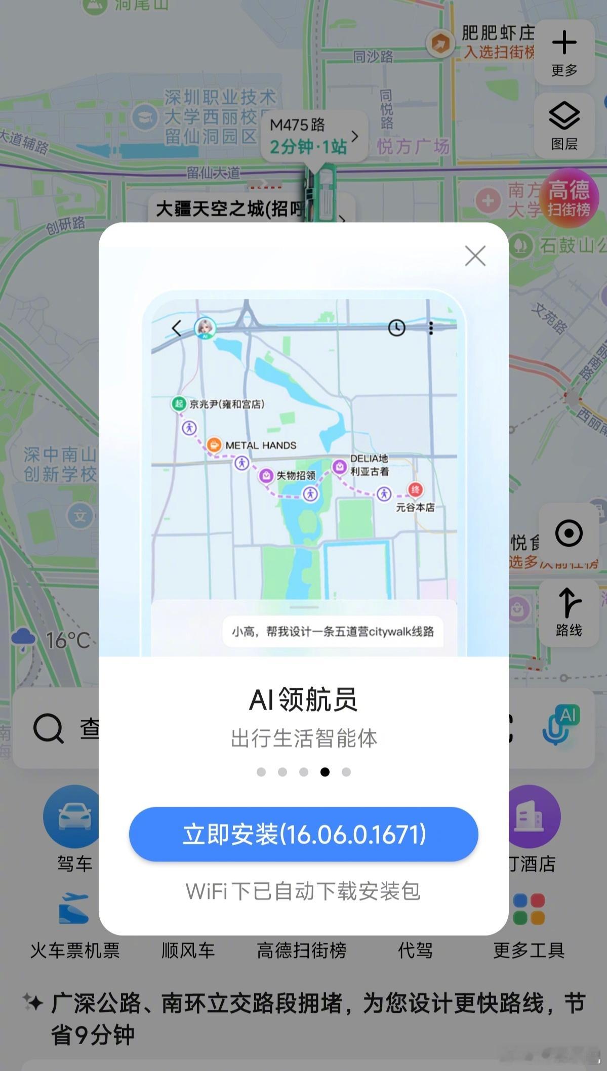 刚点开高德地图,好家伙现在导航也带智驾了听上去可以更智能监测路况,平时出去玩开到一半跟你说哪里有好玩好吃之类的有没有已经升级的尾巴试一试按理说高德的出行数据不比这些车企的数据少,做这些更有优势