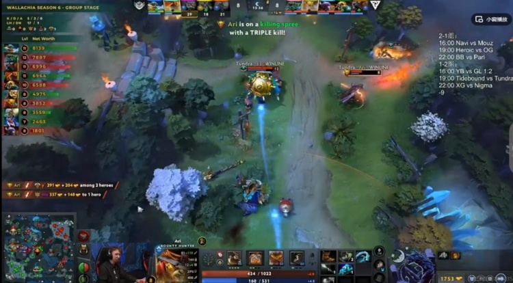 [15分钟]河道TBD撒粉想动Ari赏金,结果正面bzm哈斯卡威慑,侧翼33潮汐杀出一个大招留住两人!Ari赏金三杀,TBD的三四五号位都被留住!Tundra还了一波0换3!