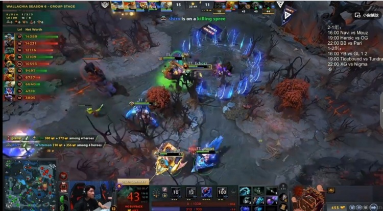 [41分钟]TBD想开雾出门,但是第一波被破雾,抱团位置被确定,33潮汐直接一个跳大击飞五个!TBD四人瞬间倒下!planet萨尔交出买活没啥用啊!Tundra拆完中路高地也不贪啊!回头再拿肉山!Pure拍拍再次带盾!