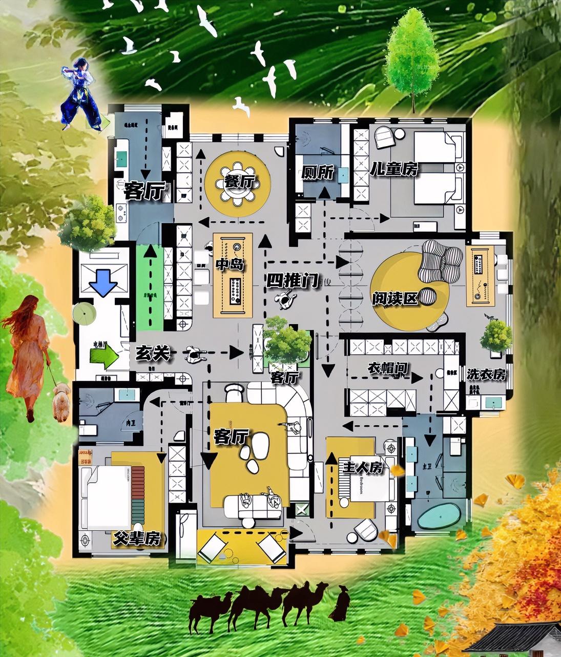 你喜欢,这个桀骜不驯的布局,细节真的端庄又大气,273㎡真是天生尤物! 尤其是幽长大横厅,最高境界就是懂如何,做洄游! 从前门到后门,做的是后厨洄游,好吃食! 从门口到贮物室,叫收纳式洄游! 从门口去主卧,最大的一条洄游,穿过阳台很新颖,空间很独特,最大胆的手法! 而四推门背后的休闲厅,纯纯的公共空间,做氛围的在茶台,管烟火气属于家政间,论心机,闲散平台全网绝无仅有! 21㎡娱乐区太有魅力了!管通透,风畅快! 十七米横厅,是当之无愧的超一线客厅! 布局是四联横厅,一个不违合的大横厅,四个生活功能,互为一体,不影响各自的功能性,格局很帅,动线有趣,造型有腔调儿! 一个有理有据,洄游被肯定的一户人家! 很喜欢对三居室的总结和点评,不大拆大改,也能让枯燥无味的平面图,越看越出彩儿! 带人性化的动局,一个睿智的房子!