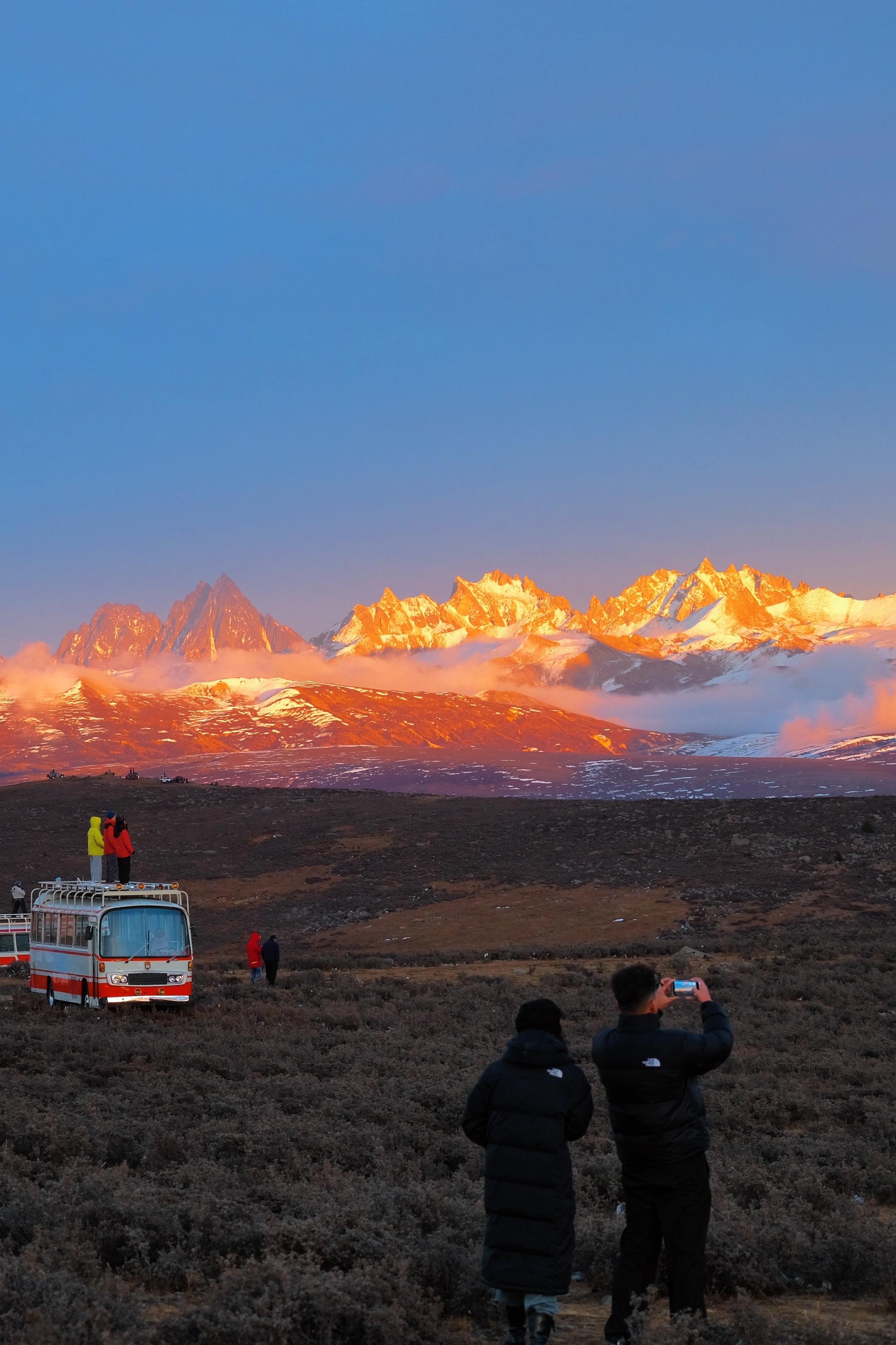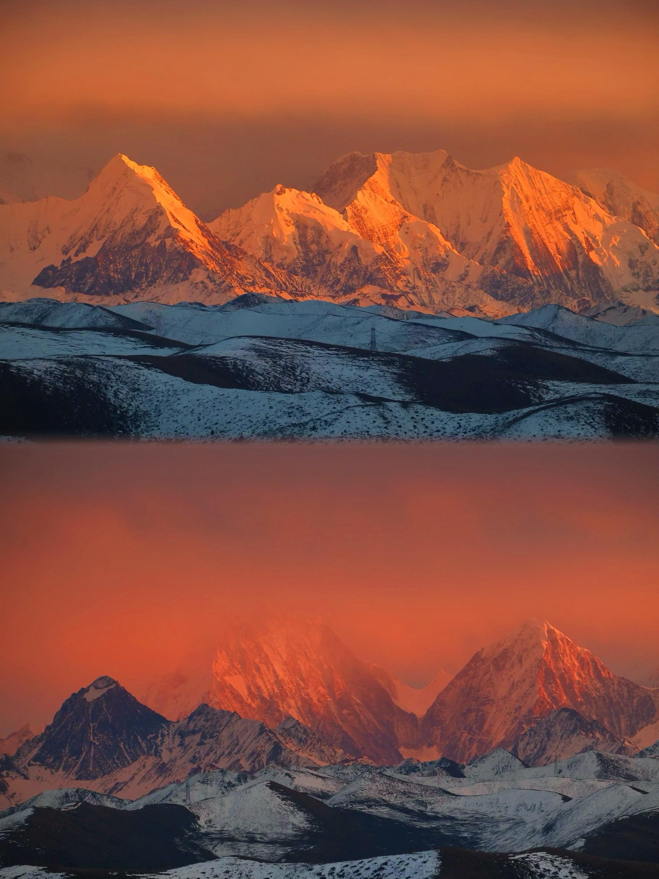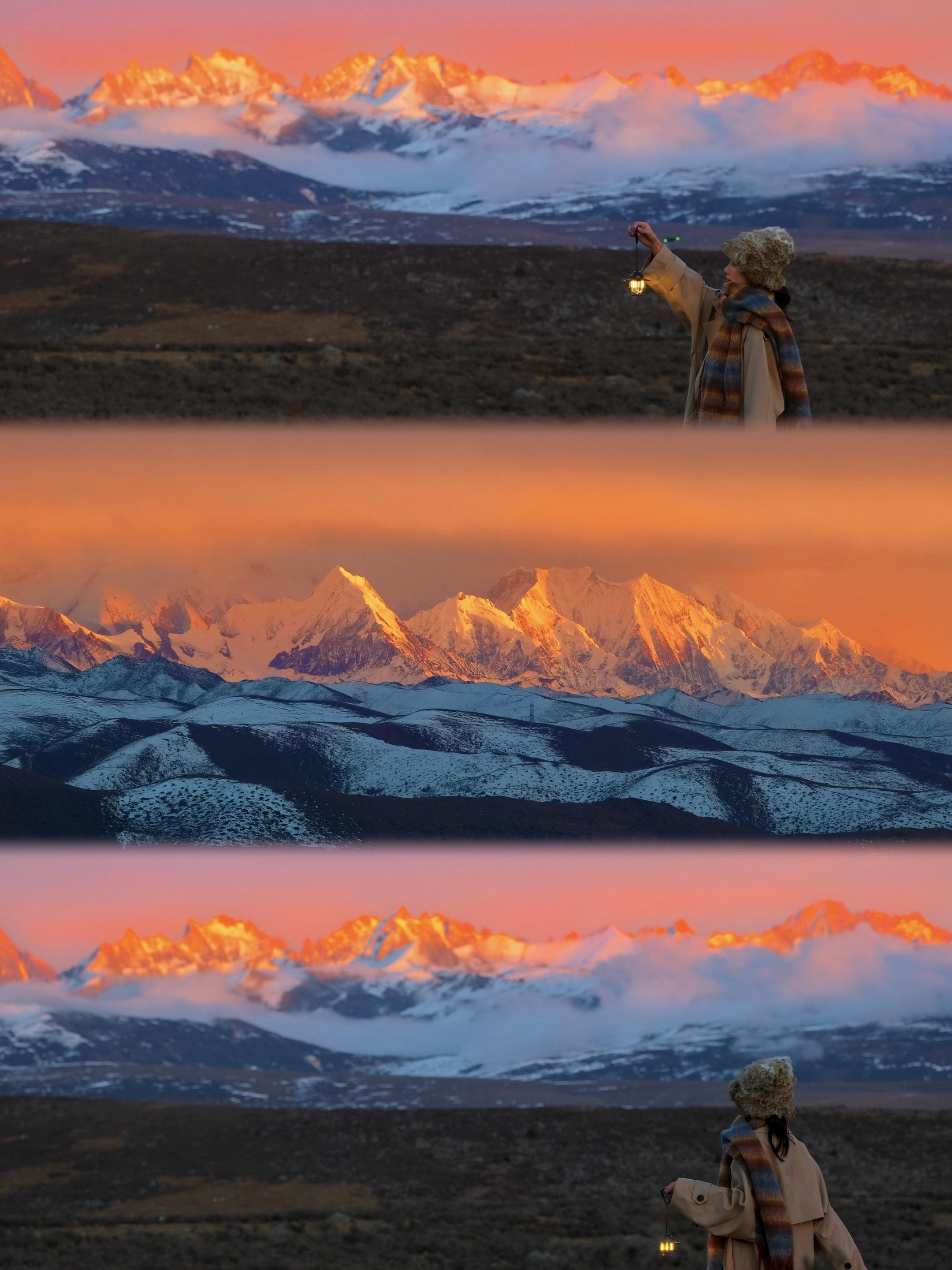 太幸运了 在鱼子西看到了日照金山🌄。见者好运~听说看到日照金山的人会幸运一整年