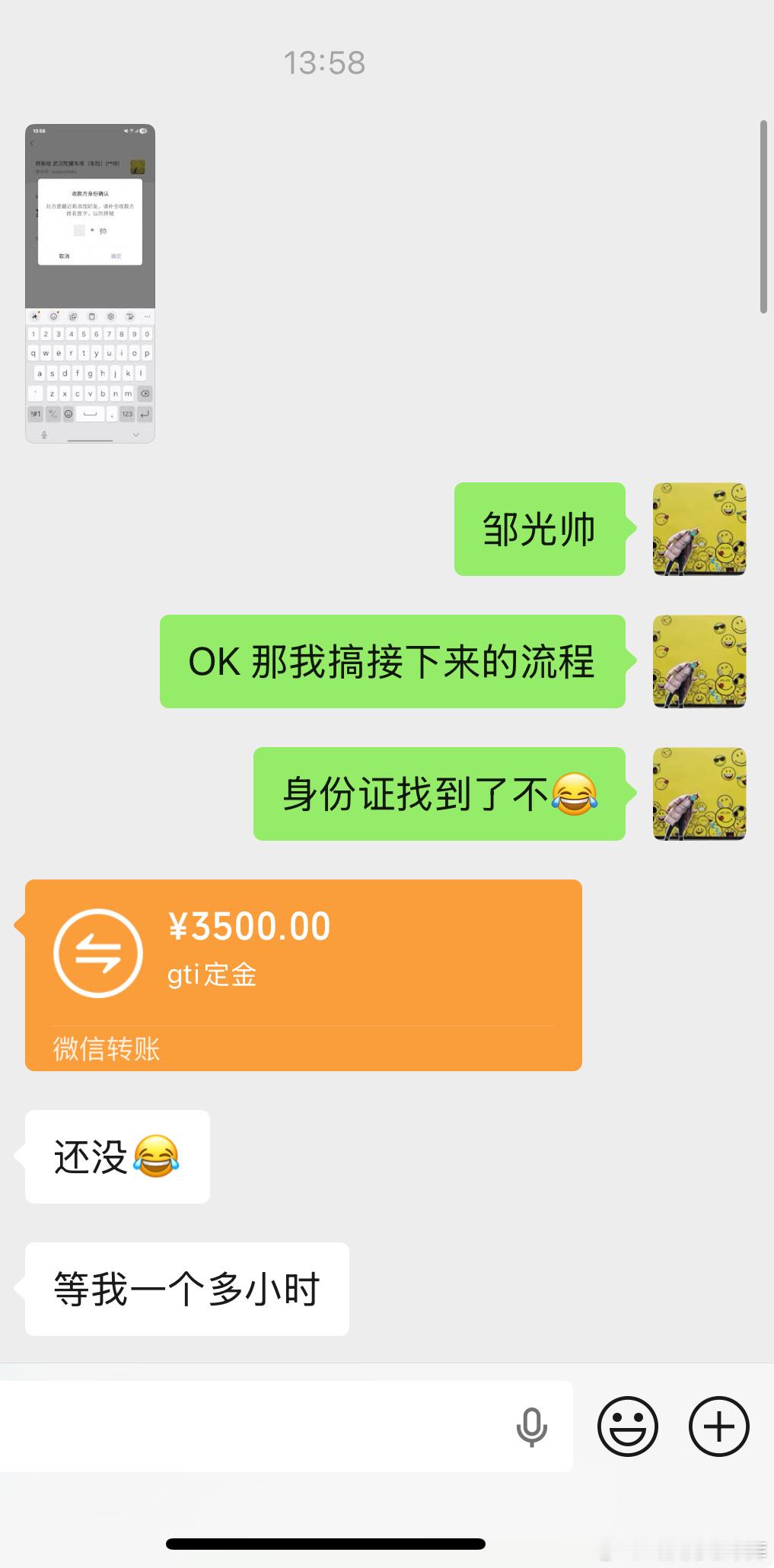GTI也卖了 收了定金中午客户就转定金了我到现在也没收……因为太忙了 我定金回执来不及写……进一步说明 咱纯纯正规步骤没到 分文不收