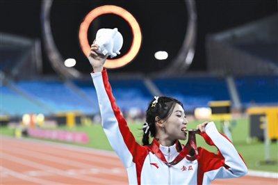 “我职业生涯的目标,一直是希望达到国际健将的成绩,今天我做到了。”话语中透着坚定,“所以我的目标要放得更长远,希望以后能够站上更高的舞台。”谈到自己欣赏的运动员,她的眼睛亮了起来:“短跑运动员里,我喜欢牙买加名将弗雷泽。还有国内这些短跑名将都是我要学习的榜样。”而对于冠军陈妤颉,她笑称,“小孩姐”的表现让人钦佩:“她可以担起我们中国女子短跑,这是一个好的开始。”