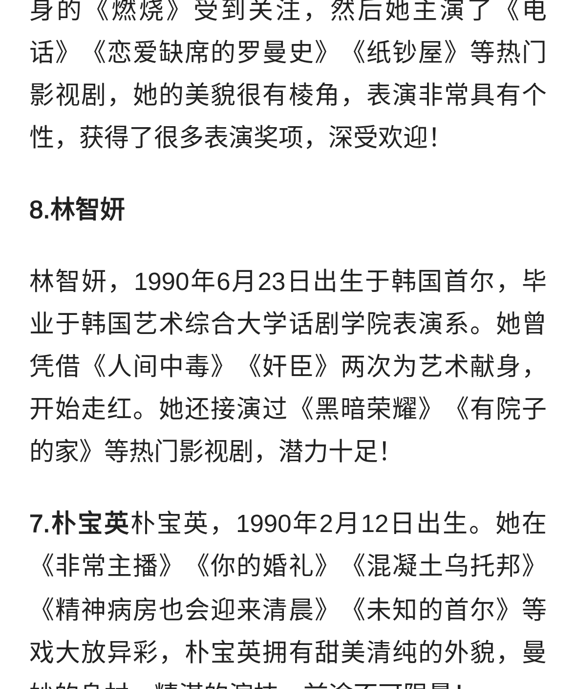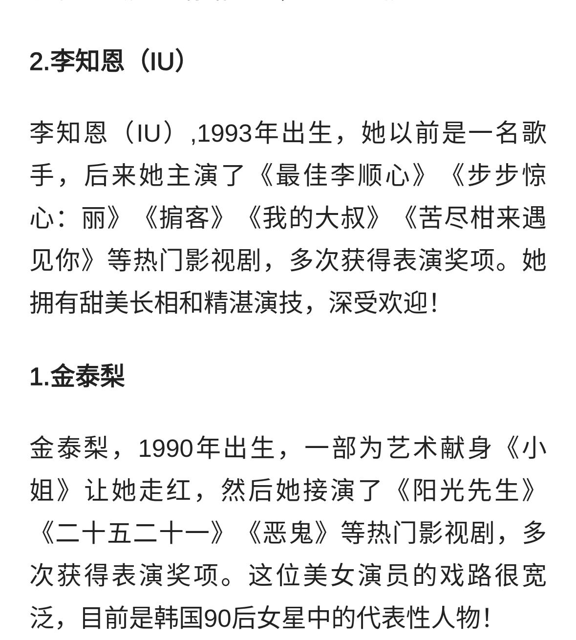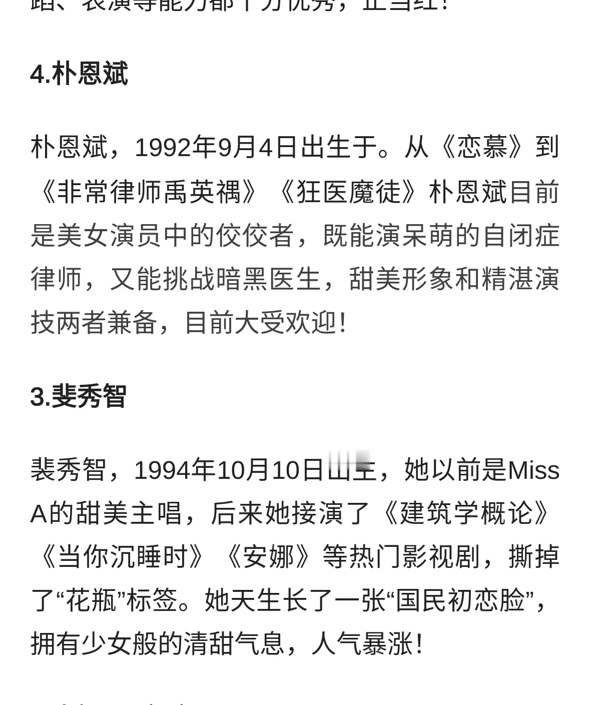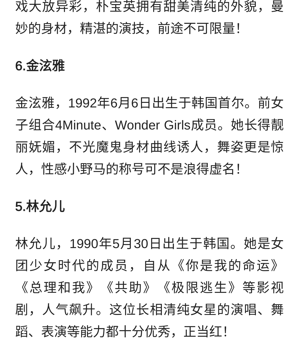 十大90后韩国美女红星!又纯又欲身材火辣性感撩人