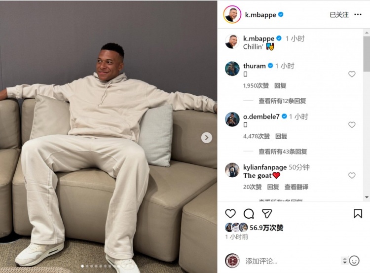 姆巴佩社媒晒出多张照片,包括近期的生活和比赛照片,以及随法国队直通世界杯的庆祝大合照,配文:“放松。”