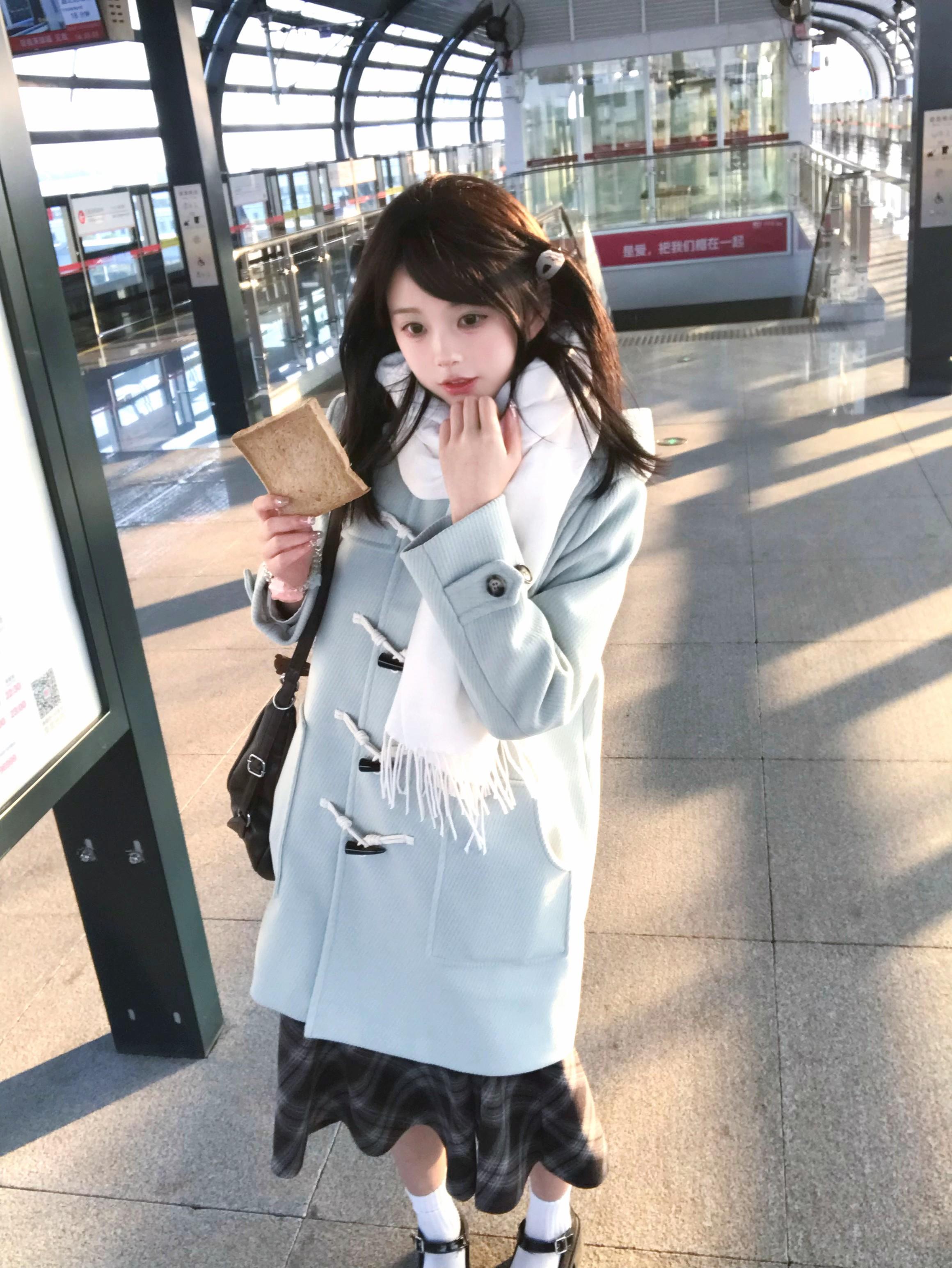 存一些冬日感jk拍照姿势✨。冬天怎么能不穿日系大衣呢!!给宝宝们一些冬日感拍照tips~ 1️⃣服装上可以选择牛角扣大衣~深色浅色都很好看滴,搭配白色围巾🤍更有冬日氛围感哦 2️⃣设备我用的是iphone7,老手机拍出来更有古早感氛围~ 3️⃣道具选择日常的吐司面包和包包都可以哦,很日常又氛围~
