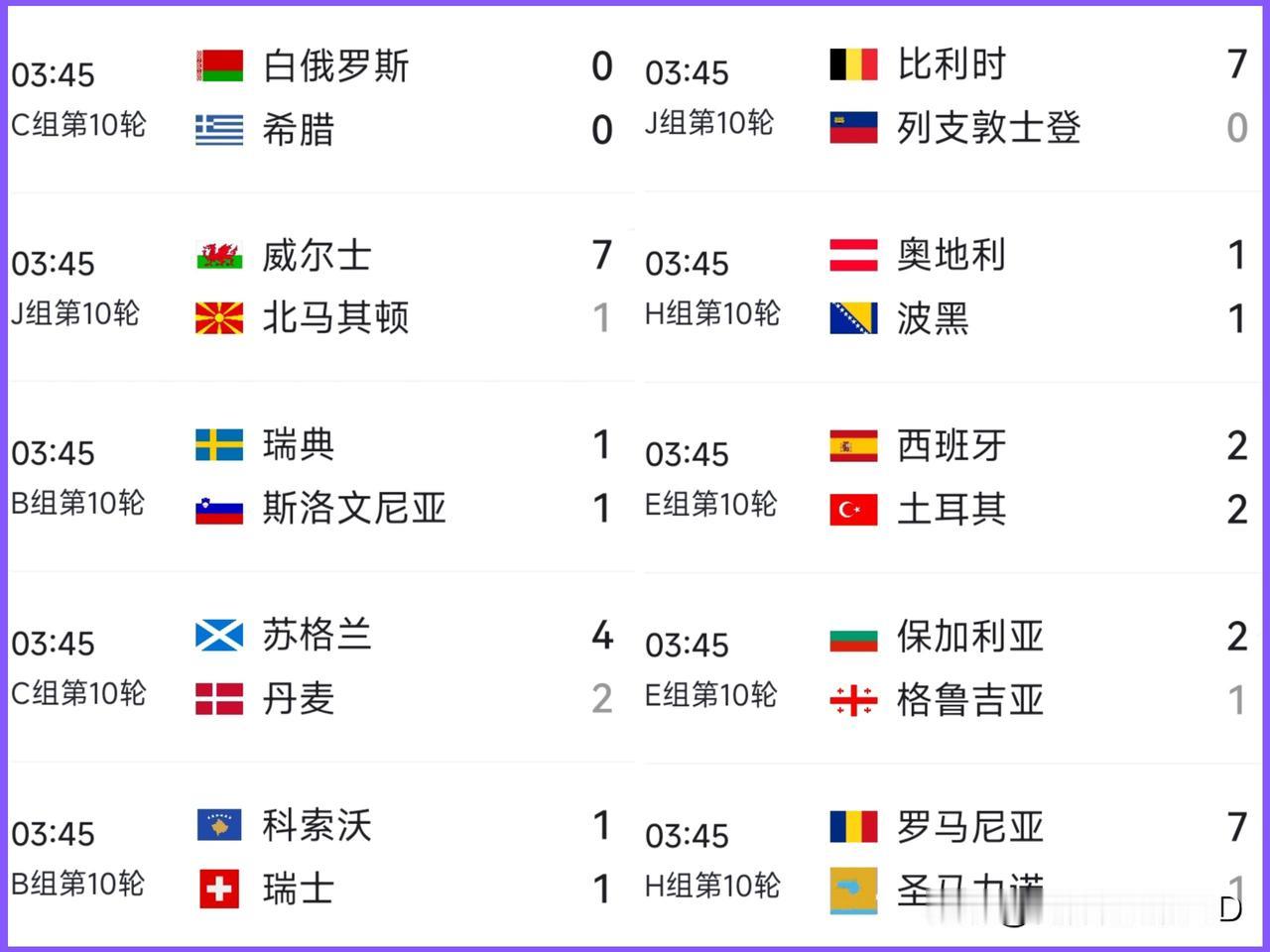 欧洲直通世界杯的12支球队全部出炉,另有16支球队争夺4张门票,包括意大利! 今日凌晨,2026年美加墨世界杯欧洲区预选赛最后一轮10场比赛全部结束,随之欧洲直通世界杯和参加附加赛的各12支球队全部诞生,确定参加美加墨世界杯的球队已达39支。 欧洲12支直通世界杯的球队为(按出线顺序): 英格兰、法国、克罗地亚、葡萄牙、挪威、荷兰、德国、西班牙、瑞士、奥地利、苏格兰、比利时。‌‌ 欧洲12支参加附加赛的球队为(按最新世界排名): 意大利、丹麦、土耳其、乌克兰、波兰、威尔士、捷克、斯洛伐克、阿尔巴尼亚、爱尔兰、波黑、科索沃。 加上通过欧国联跻身附加赛的瑞典、罗马尼亚、北爱尔兰、北马其顿,一共16支球队参加欧洲区附加赛,争夺最后4张世界杯门票。 2026美加墨世界杯 世界杯欧洲区预选赛