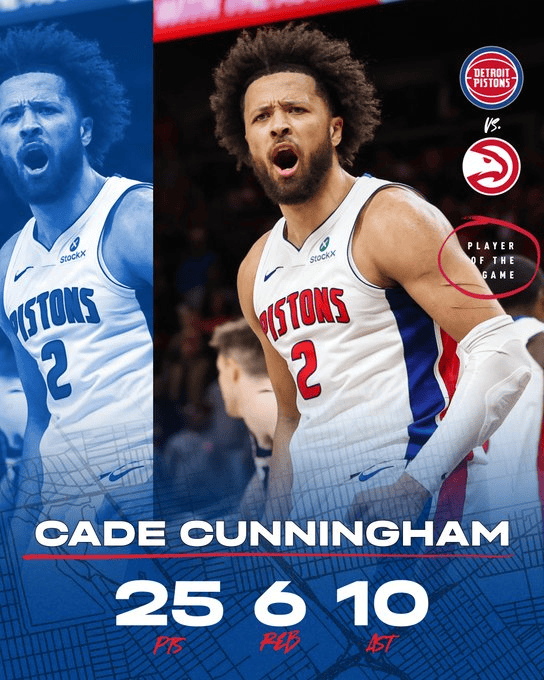 赛后,活塞官方发布坎宁安数据海报,并配文道:“重回正轨。”