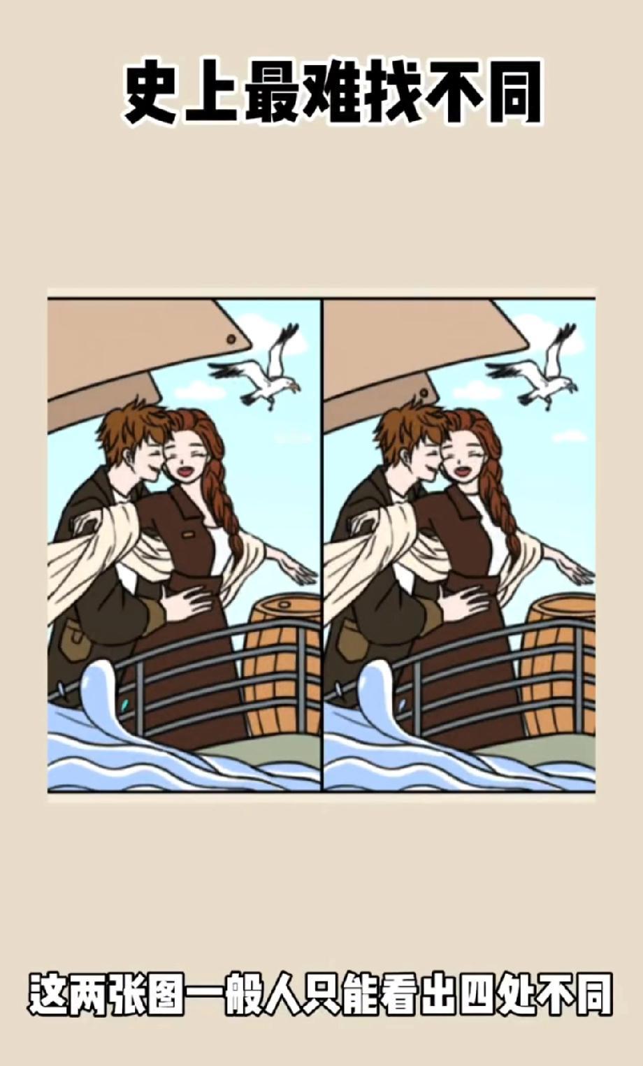 别不信!这图的不同处藏得太狠,我盯了5分钟才发现2处,评论区有大神吗?
