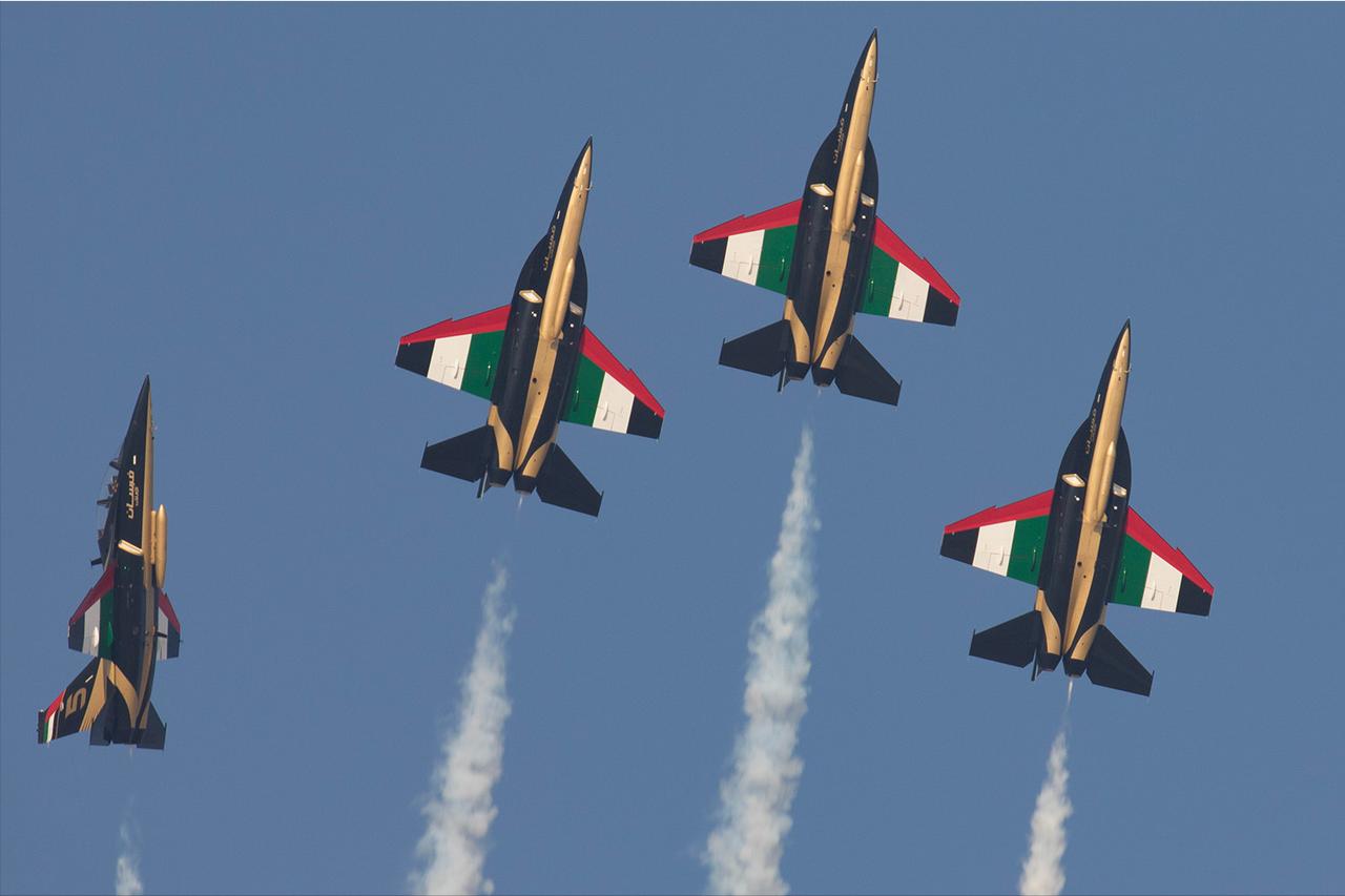 涂装低调奢华,阿联酋空军“骑士”飞行表演队L-15高级教练机首次亮相迪拜航展!