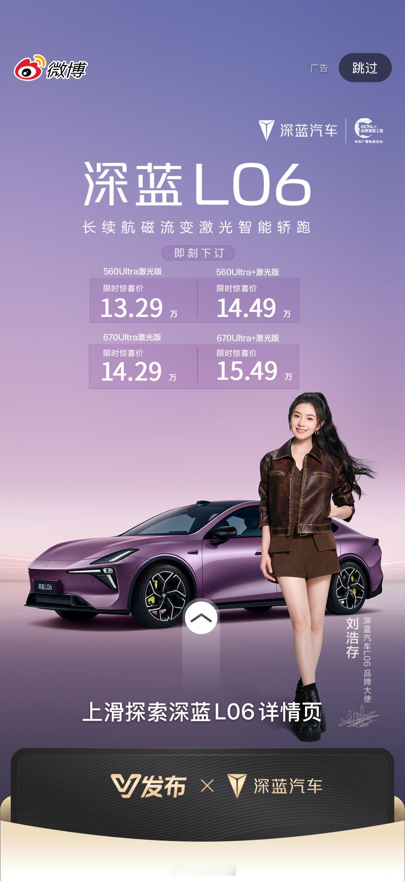 感觉深蓝汽车很满意品牌代言人刘浩存,好几天微博开屏都开到了。