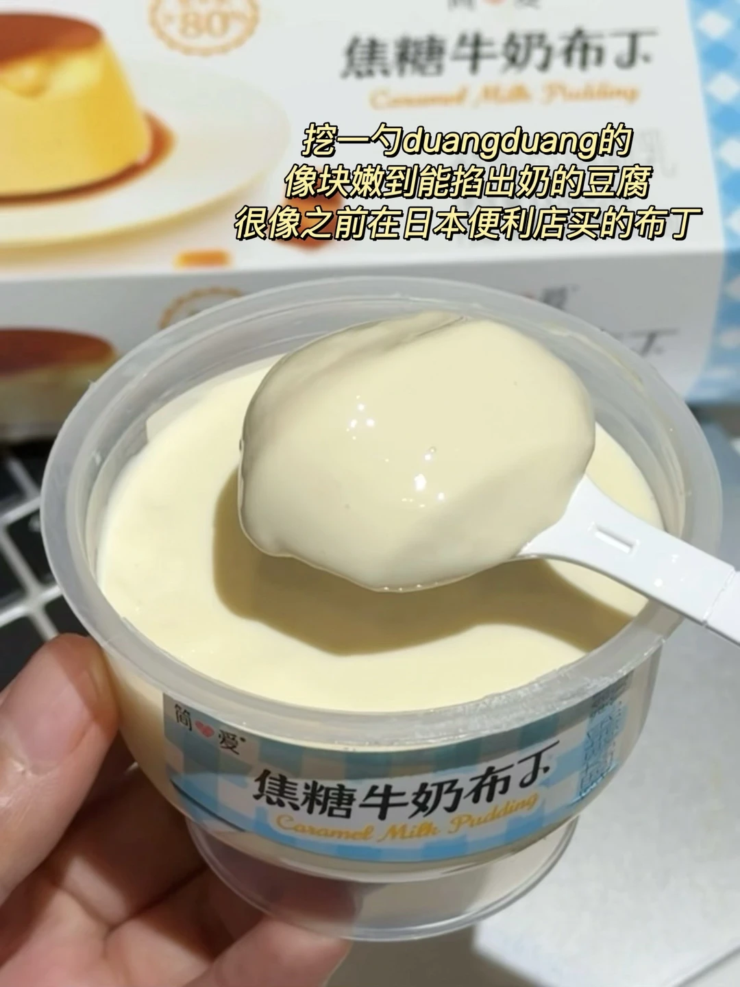 挖一勺的,像块嫩到能掐出奶的豆腐,入口像吞了口云朵奶,完全不用嚼就化在嘴里~焦糖是焦香带点微苦的甜,随自己口味想加多少加多少,和奶味融合的刚刚好,奶乎乎的一点都不腻,很像之前在日本便利店买的布丁,不齁不腻,每一口都是实打实的奶香!