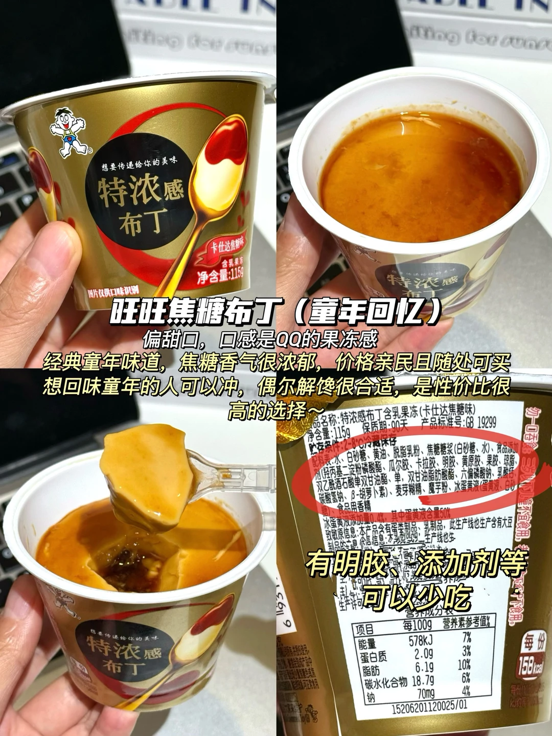 总结:简爱焦糖布丁赢在丝滑口感+神仙甜度,简爱米布丁胜在糯米创意+清爽口感,而且配料表都超干净!这两款闭眼冲不踩雷,布丁脑袋直接囤就对了!