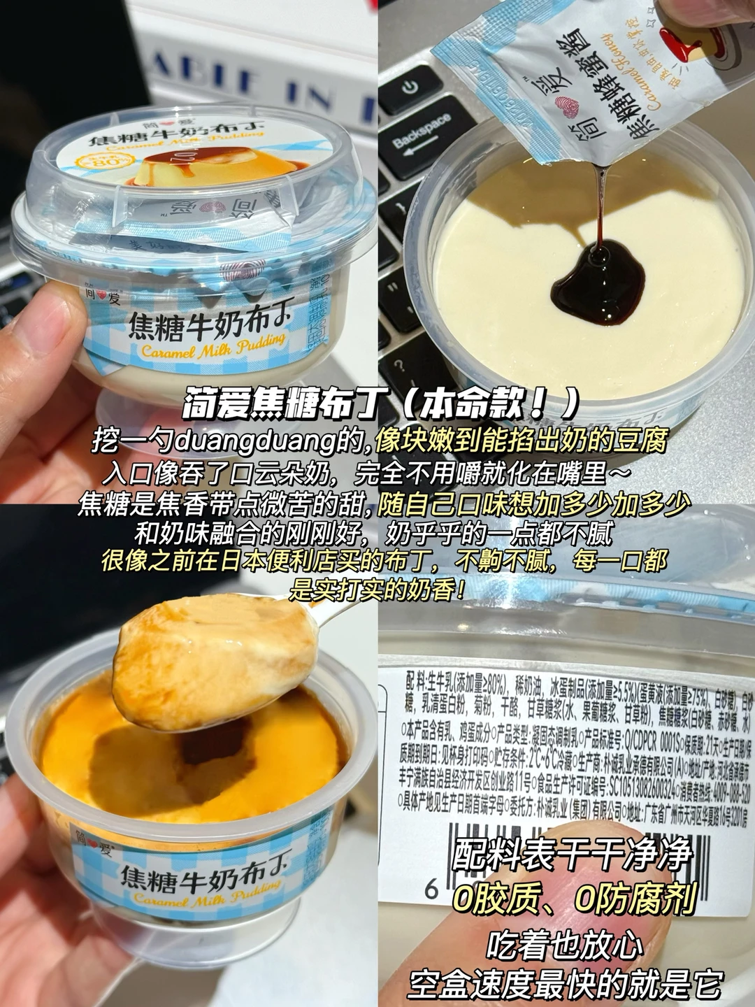 布丁狂热爱好者暴风吸入5款热门选手,从奶味浓淡到口感层次全测评,简爱焦糖布丁和简爱米布丁直接焊在我冰箱里,好吃到舔盒!