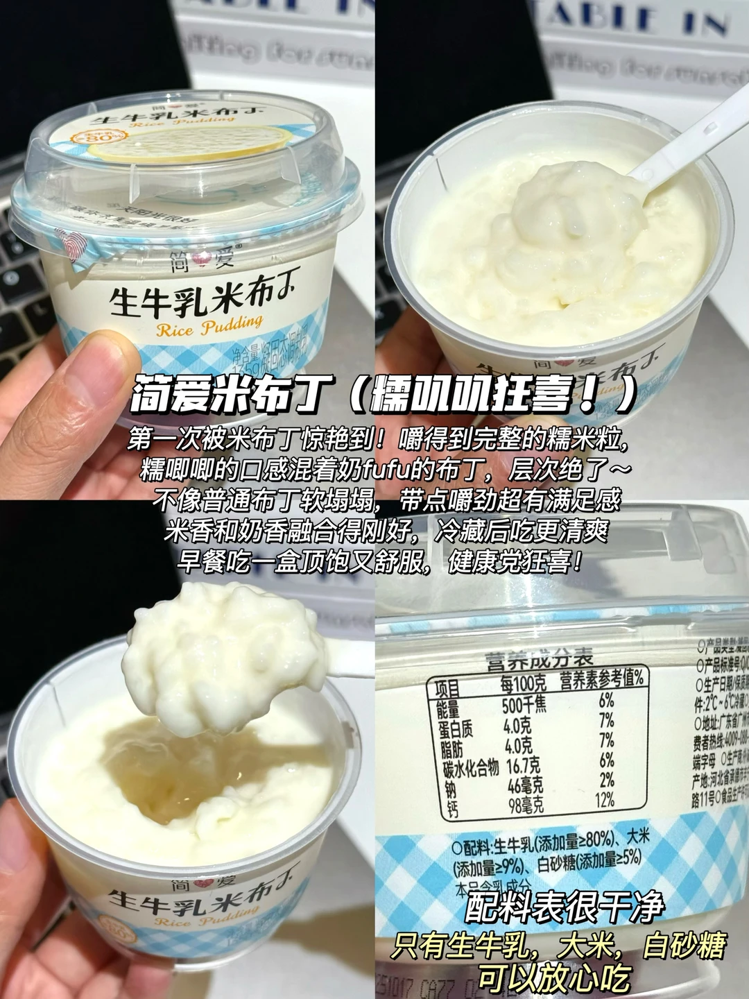 第一次被米布丁惊艳到!嚼得到完整的糯米粒,糯唧唧的口感混着奶fufu的布丁,层次绝了~不像普通布丁软塌塌,带点嚼劲超有满足感,米香和奶香融合得刚好,冷藏后吃更清爽,早餐吃一盒顶饱又舒服,健康党狂喜!