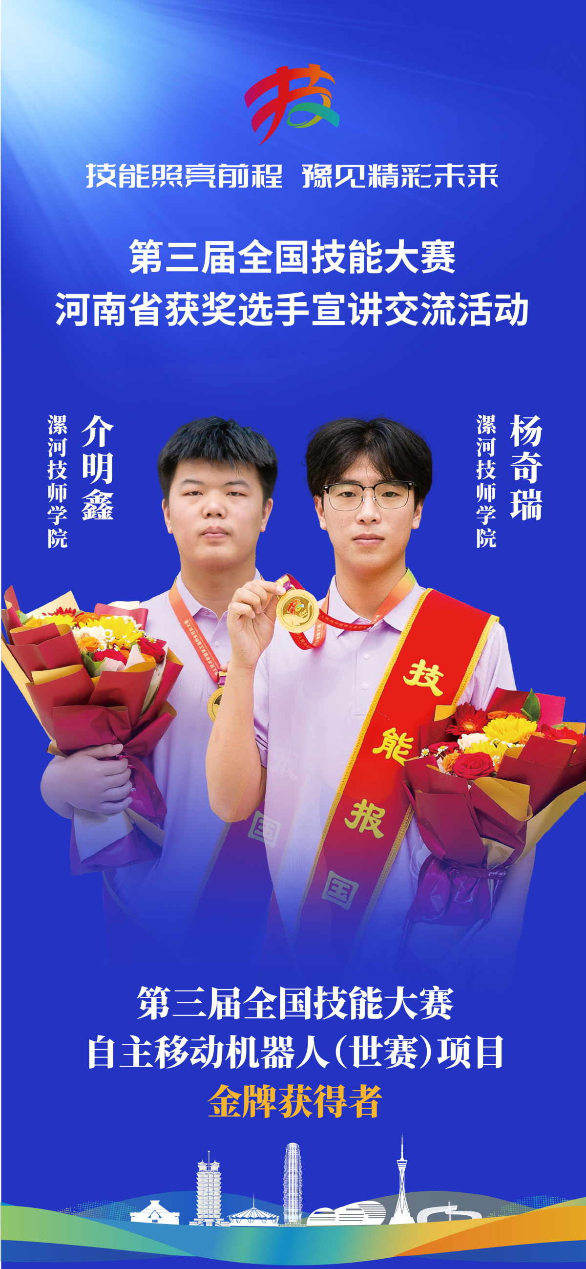 2025年9月,第三届全国技能大赛闭幕式的聚光灯下,“自主移动机器人(世赛选拔项目)”金牌得主的名字响起——介明鑫与杨奇瑞。两人挥手快步上前,戴上奖牌的那一刻,有太多未说尽的故事:这不是一枚属于个人的奖牌,是两个00后技能青年用一千多个日夜的汗水、上千次的技术攻坚,以及彼此交付后背的信任,共同熔铸的青春勋章。
