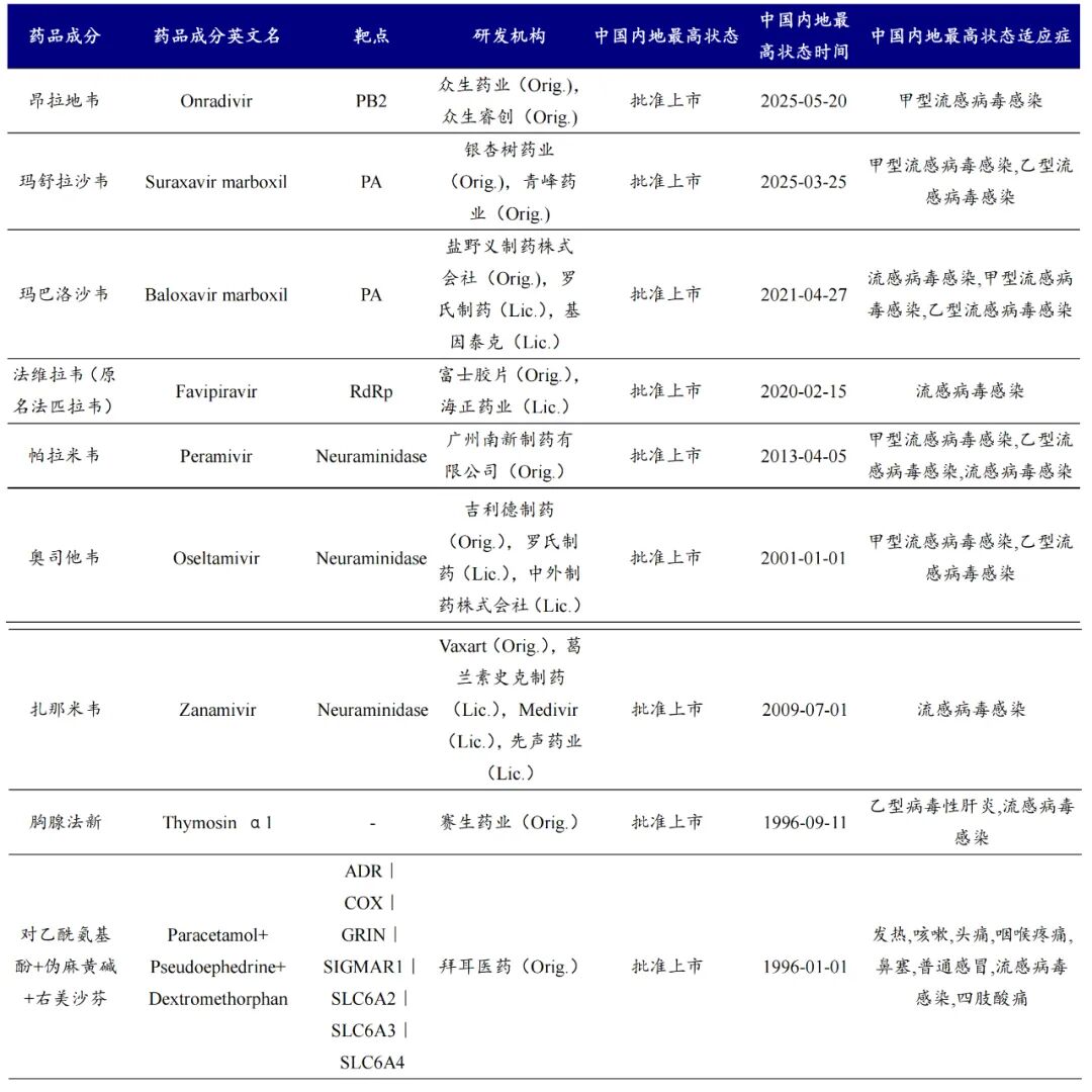 中国获批上市的流感新药