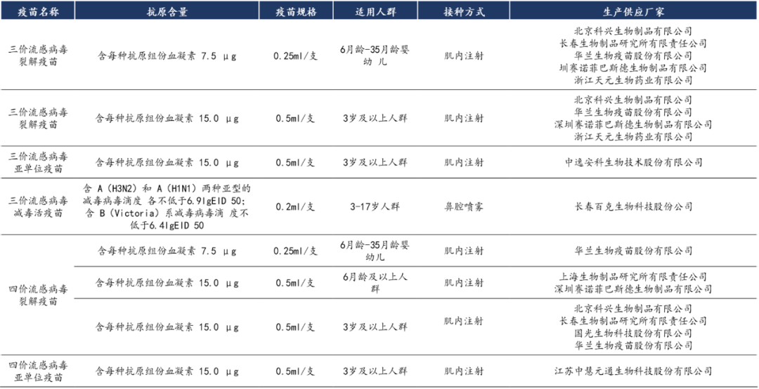 中国获批上市的流感疫苗