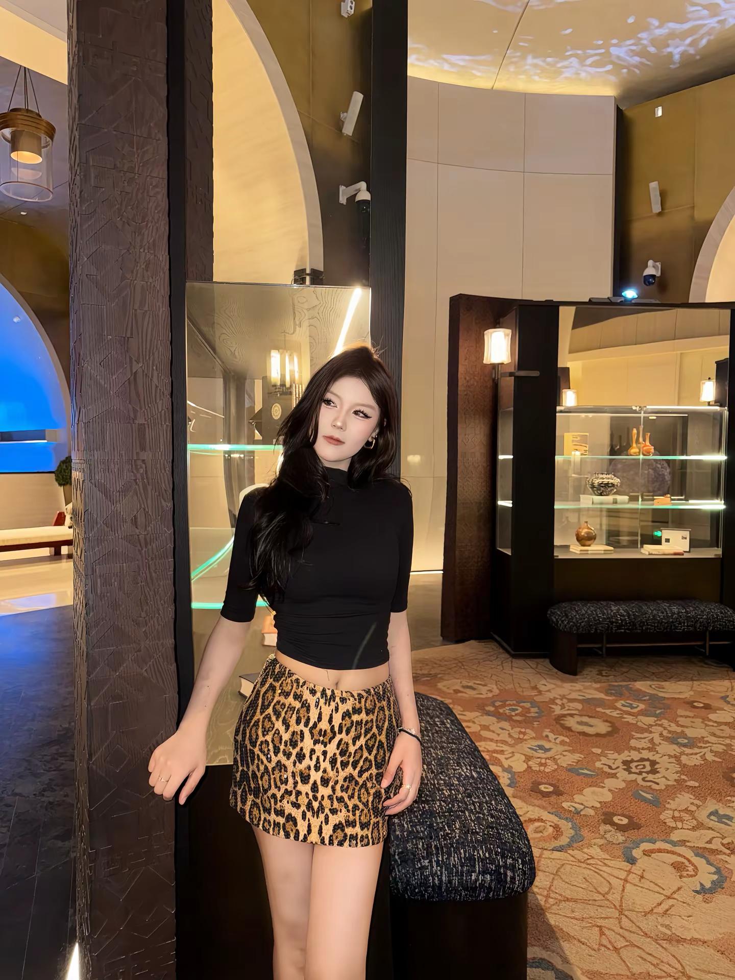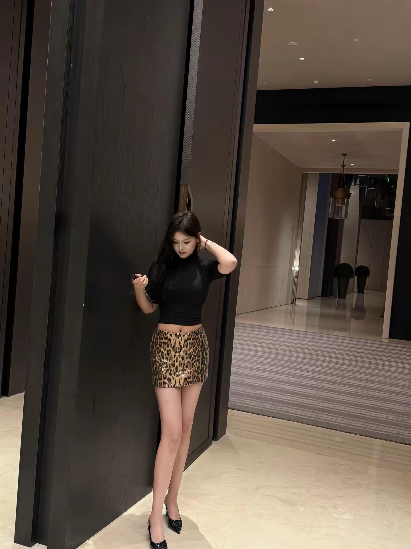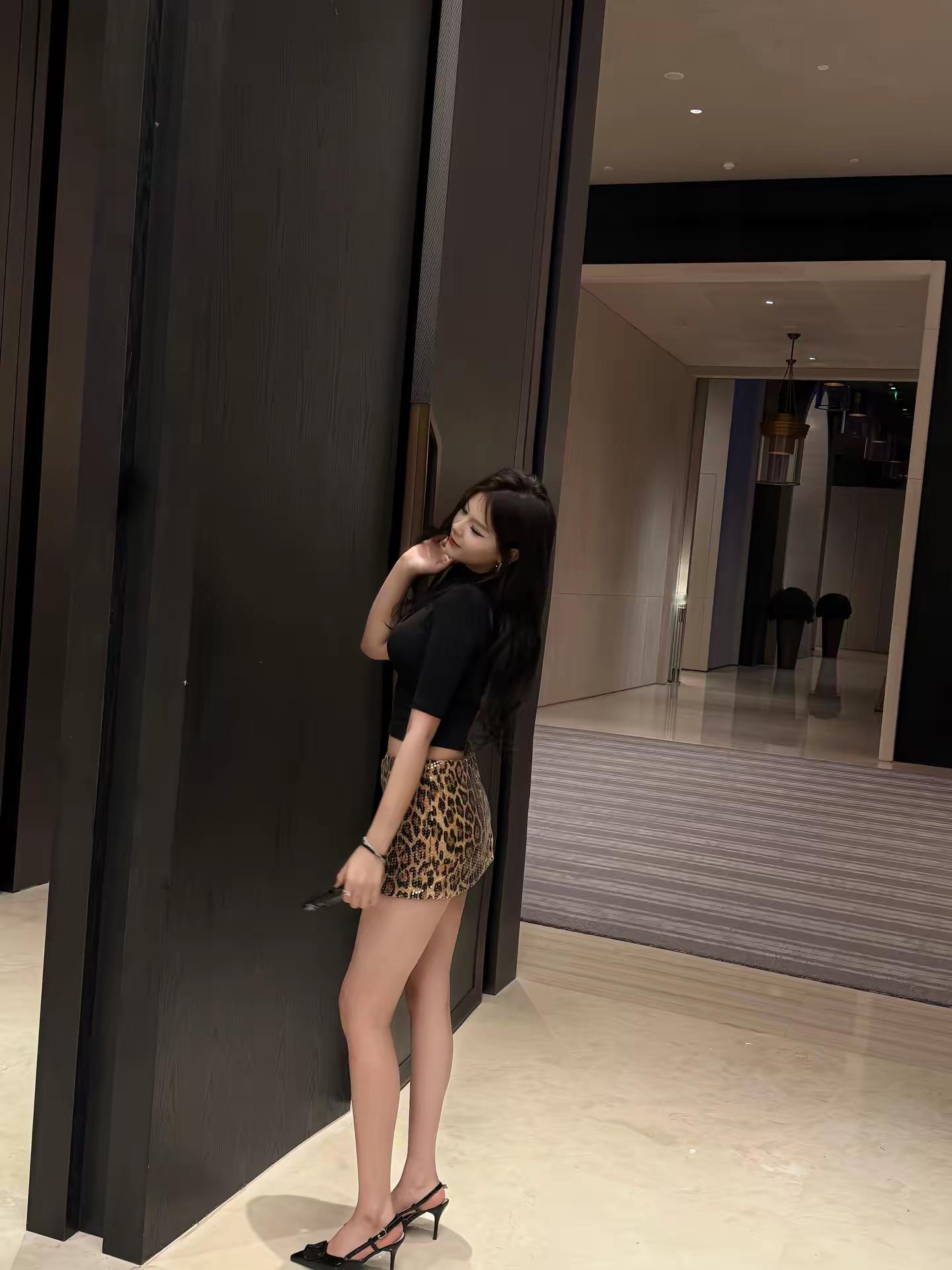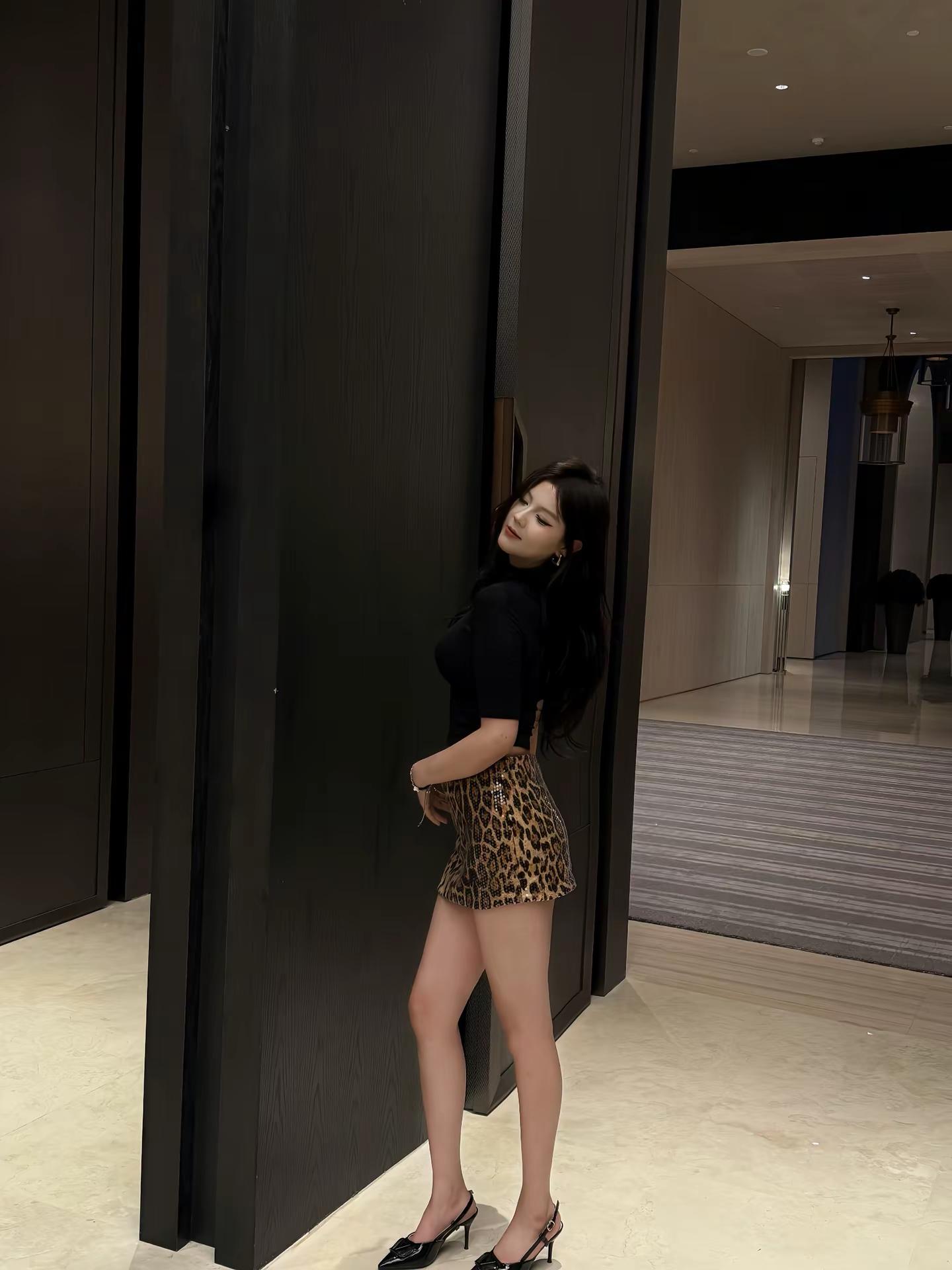 叶濛雨成都车展摆拍豹纹包臀裙搭配黑丝细高跟完美展现凹凸有致的优越身材