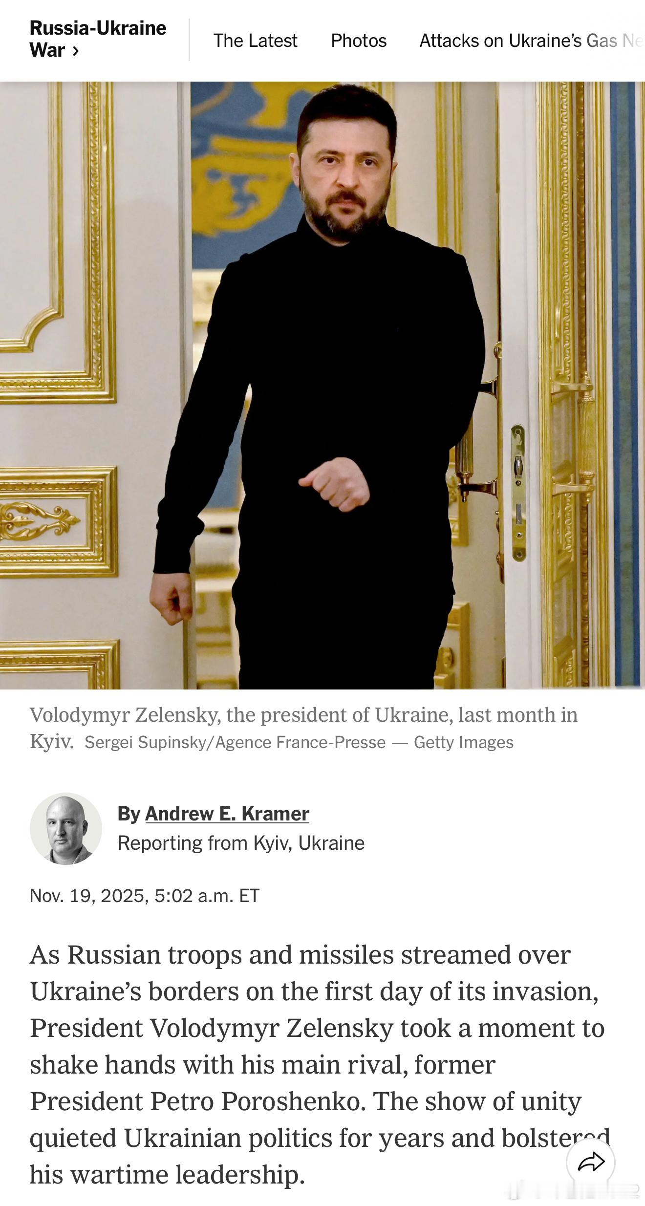 搬运《纽约时报》最新专题文章,我用谷歌机器翻译的。标题:泽连斯基四面楚歌,腐败案令乌克兰战时团结分崩离析随着总统的盟友被指控在国家士兵浴血奋战之际中饱私囊,一个反泽连斯基的政治联盟正在形成。在俄罗斯入侵乌克兰的第一天,当俄罗斯军队和导弹涌入乌克兰边境时,总统泽连斯基抽出时间与他的主要竞争对手、前总统彼得罗·波罗申科握手。这一团结的姿态使乌克兰政坛平静了数年,并巩固了他在战时的领导地位。如今,这份平静已不复存在。一项针对数百万美元回扣案的广泛调查牵涉到泽连斯基的亲信,这不仅使乌克兰政坛再次陷入动荡,也削弱了泽连斯基在国内的威信,而此时战场上的压力却在不断加剧。随着泽连斯基总统任期内最严重的腐败丑闻不断发酵,此前蛰伏的反对派正联合起来,形成自2022年入侵乌克兰以来首个大规模的反泽连斯基运动。这些反对者包括乌克兰的独立反腐机构、反对党、政治活动人士和媒体。握手言和的余波已成过往,双方不再手下留情,泽连斯基的批评者们开始使用以往难以想象的措辞,甚至指责总统的盟友背叛国家。许多乌克兰人对泽连斯基的盟友在国家士兵为生存而战之际中饱私囊的指控感到愤慨。波罗申科的政党在一份关于腐败丑闻的声明中表示:“国家终于看清了‘血钱’的含义。”声明还称,泽连斯基的战时内阁“不专业且腐败”。乌克兰目前没有重要政治人物呼吁泽连斯基辞职,而且由于戒严令导致选举暂停,他无法通过投票下台。但分析人士指出,围绕腐败问题而形成的这场运动对他构成了严重威胁。随着反对派势力不断壮大,泽连斯基对议会的控制可能受到威胁,因为他所在政党的成员纷纷倒戈成为独立人士,这将削弱他通过立法的能力。在战争期间,立法对于快速决策至关重要。波罗申科的政党正在收集签名,准备对战时内阁发起不信任投票。泽连斯基的核心圈子也面临压力。反对党“声音党”成员雅罗斯拉夫·热列兹尼亚克呼吁泽连斯基的得力助手、幕僚长安德烈·叶尔马克辞职。分析人士指出,泽连斯基、叶尔马克和一小群顾问牢牢掌控着乌克兰的权力。前欧盟驻基辅政治顾问巴拉兹·亚拉比克表示:“泽连斯基唯一的出路就是彻底清除他战时领导团队中的所有人。”针对泽连斯基先生的运动始于7月的街头抗议,此前他曾试图压制那些调查其核心圈子的反腐机构。他很快改变了策略,但本月曝光的腐败丑闻再次引发了民众对泽连斯基先生的不满,许多乌克兰人要求政府提高透明度和问责制。民调显示,民众对泽连斯基先生的信任度已降至接近50%,而入侵后他的信任度曾飙升至约90%。泽连斯基先生已执政近七年,他尚未表明是否会在选举恢复后参选,前提是俄罗斯最终同意停火,允许解除戒严令。上周开始,有关腐败的丑闻开始浮出水面,其中也牵涉到总统身边的人士。乌克兰国家反腐败局表示,泽连斯基先生的前商业伙伴蒂穆尔·明迪奇策划了这起盗窃案,在过去15个月里,至少有1亿美元通过向承包商支付回扣的方式从乌克兰国家核电公司被盗。该独立调查机构成立于2015年,得到了国际货币基金组织和西方捐助者的支持。调查人员称,他们在基辅的一间公寓和一间办公室安装了窃听器,明迪奇先生和包括一名政府部长和核电公司一名高管在内的其他人曾在此讨论瓜分数十万美元并将资金转移到瑞士和以色列。反腐败局已将录音发布到网上。在俄罗斯近期对乌克兰发电厂发动导弹和无人机袭击后,乌克兰正遭受长达数小时的停电,因此,这些关于能源领域盗窃的指控对乌克兰民众来说更加令人愤慨,对泽连斯基先生来说也更具政治敏感性。泽连斯基总统已要求司法部长赫尔曼·哈卢申科和能源部长斯维特拉娜·赫林丘克辞职。两人均已递交辞呈。国家安全与国防委员会对泽连斯基总统的前商业伙伴明迪奇实施了制裁。明迪奇是泽连斯基在担任总统前创办的喜剧电视工作室的部分所有者。在搜查其住所前不久,明迪奇逃离了乌克兰。政府还宣布将对监管机构和国有企业的治理实践进行全面改革。前副总理奥列克西·切尔尼绍夫被调查人员指控收受了超过100万美元的贿赂,但他坚称自己无罪,并指责调查人员断章取义地公布了录音片段。在周一的听证会上,反对派议员热列兹尼亚克表示,政府应对腐败指控的措施力度不足。他还批评了出席听证会的政府部长。在战争期间,部长出席听证会的情况实属罕见。政治分析人士指出,对高层腐败的指控可能导致议会内部出现反对泽连斯基的阵营重组,这将使乌克兰总统与反对派控制的议会陷入僵局的局面重回正轨,这种情况在乌克兰近代史上屡见不鲜。在战时,俄罗斯可能会利用这种内部分裂。乌克兰主要新闻媒体《乌克兰真理报》报道称,泽连斯基所在的“人民公仆”党内一个派系正在施压,要求其幕僚长叶尔马克辞职,并威胁称如果他继续留任,他们将退出该党。政治分析人士指出,对高层腐败的指控可能导致议会内部出现反对泽连斯基的阵营重组,这将使乌克兰总统与反对派控制的议会陷入僵局的局面重回正轨,这种情况在乌克兰近代史上屡见不鲜。在战时,俄罗斯可能会利用这种内部分裂。乌克兰主要新闻媒体《乌克兰真理报》报道称,泽连斯基总统所在的政党“人民公仆党”内部的一个派系正在施压,要求总统办公厅主任叶尔马