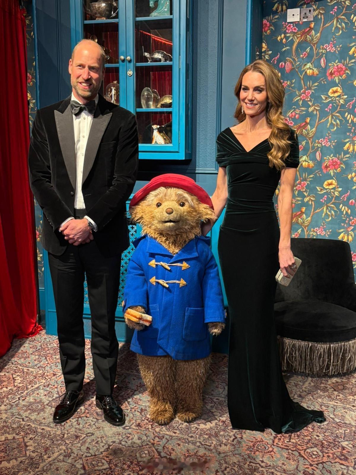 2025年11月19日,威尔士亲王夫妇在伦敦皇家阿尔伯特音乐厅与帕丁顿合影留念