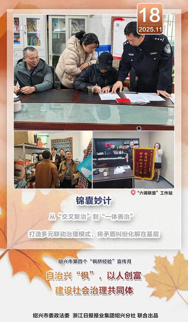 汇聚多元力量,通过顺畅、高效的联动治理模式,只为寻求一个“最优解”,守护乡邻之间的和谐氛围。甘霖镇司法所的这处温暖“心灵驿站”,是嵊州积极践行新时代“枫桥经验”,创建“派出所+法庭+司法所+平安法治办+村(社区)+相关专业部门”的“六调联盟”矛盾纠纷化解共同体,巧解百姓心头事的生动缩影。