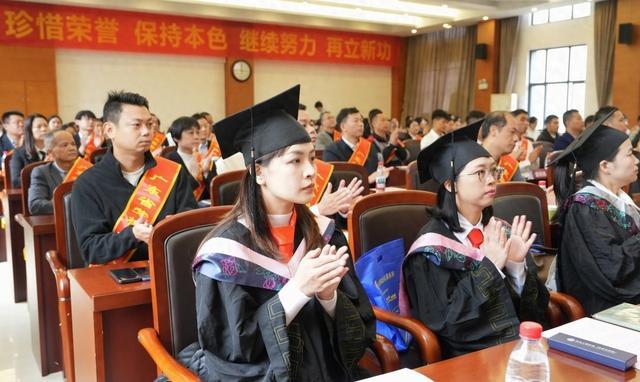 活动现场,身着学士服的陈慕娟走上主席台,接过毕业证书与学位证书,脸上洋溢着自豪与喜悦。台下,她的丈夫抱着2岁的小孩,举着手机,眼神专注地记录着这珍贵瞬间。