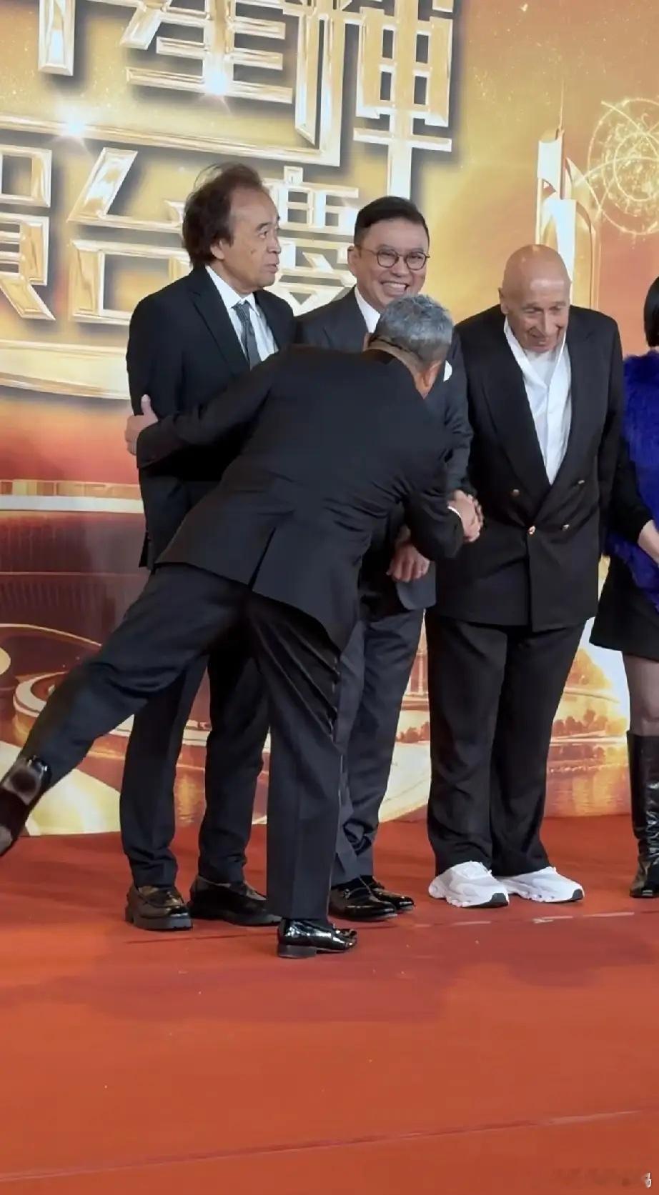 曾志伟好牛逼,竟然戴耳钉,与人握手时翘腿。11月19日,TVB58周年庆典活动红