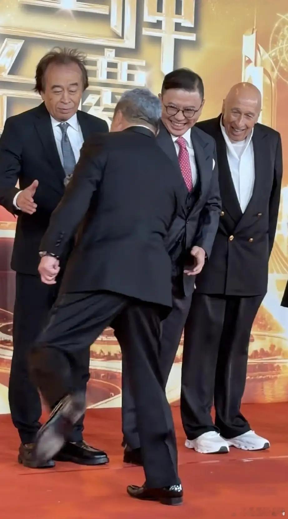 曾志伟好牛逼,竟然戴耳钉,与人握手时翘腿。11月19日,TVB58周年庆典活动红毯上,曾志伟一身西服亮相,虽然头发白了,但却格外有魅力。