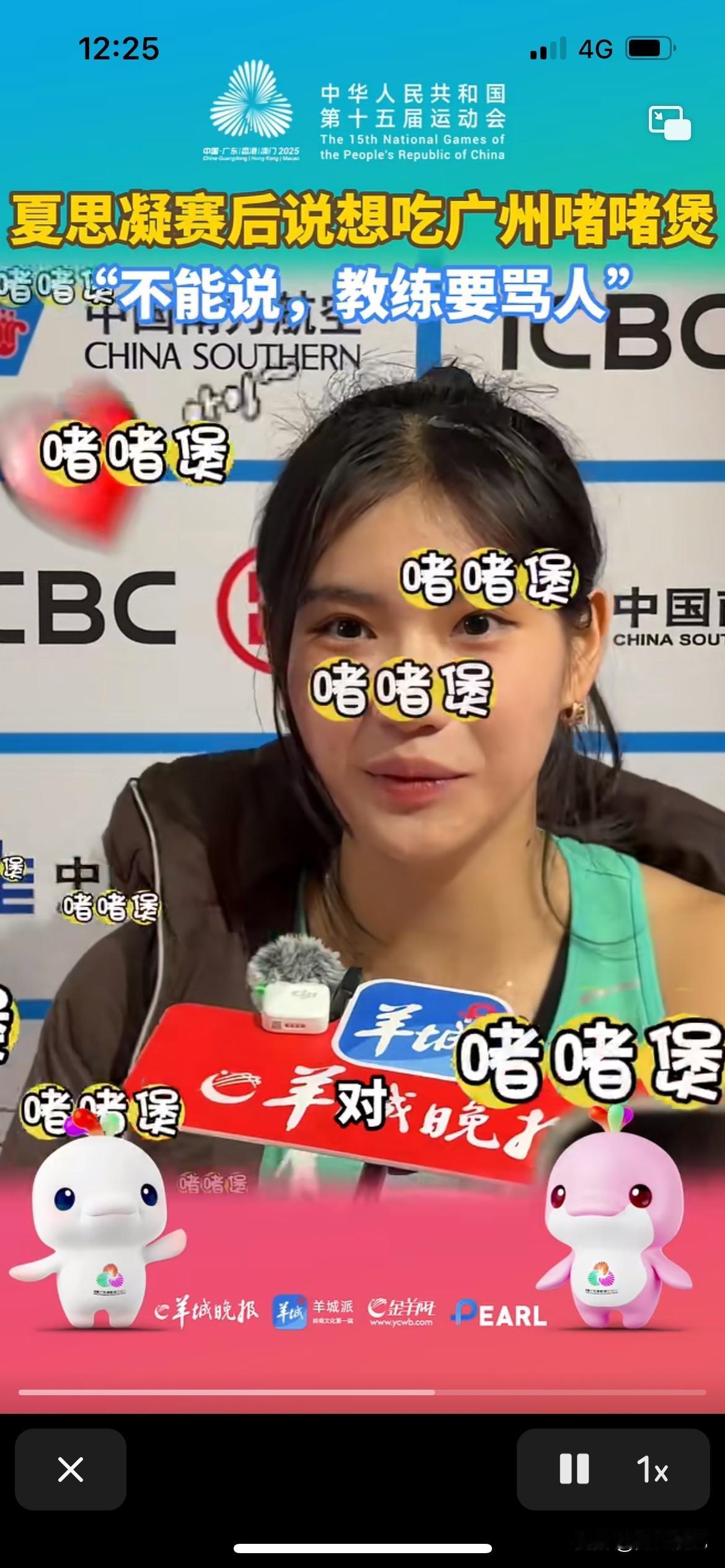 夏思凝全运会成绩没成绩,还想着去吃什么,这种情况就要反思一下,怪不得教练会骂人,你知道这个教练是谁吗? 他放了多少心血在你身上,要是还是拿不出成绩,可能就要废了,采访时应该要找自己的不足,而且要怎么去克服这些毛病,不是整天想着找好吃的,其实就是要控制好核心力量,不要左右晃来晃去,转化成往前的量,还有提高很多。
