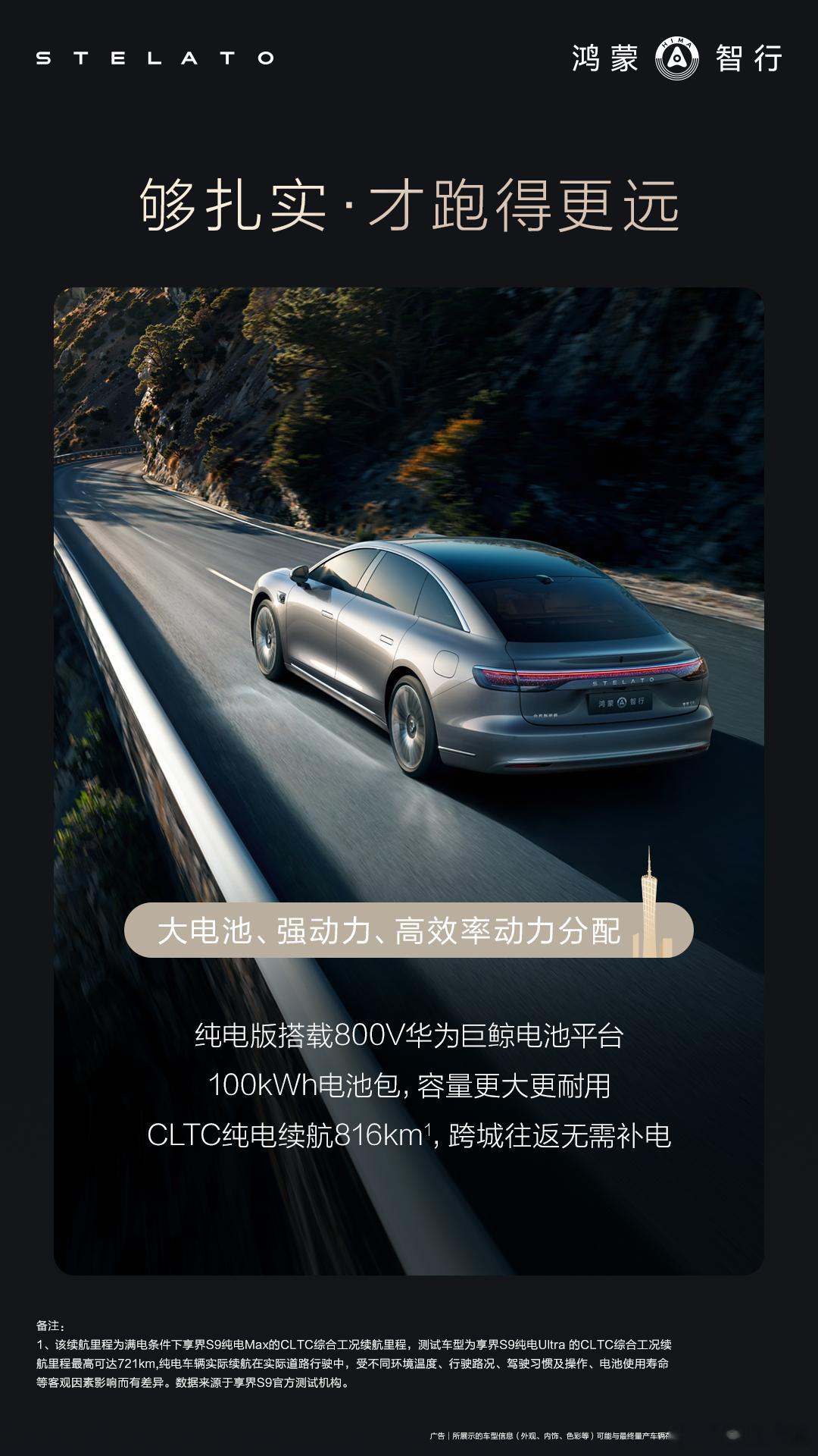 近日,在一项新能源纯电续航耐力挑战赛中,鸿蒙智行旗舰9系新品享界S9平均续航达成率超90% ,平均电耗低至13.64kWh/100km,扎实续航表现惊艳众人!新款享界S9纯电版搭载800V华为巨鲸电池平台,配备100kWh电池包,CLTC纯电续航里程高达816公里,增程版CLTC综合续航高达1378km,超长续航里程无忧;全新机械臂自动充电功能,给用户带来尊崇补能新体验。据悉,新车预售价31.8万起,11月20日将正式上市。