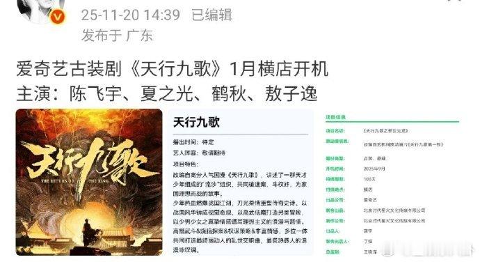 陈飞宇的古装造型一直很惊艳,红衣黑发的氛围感和《天行九歌》的美学基调太契合了。他对亦正亦邪角色的驾驭力有目共睹,相信能赋予角色独特魅力,期待他带来的惊喜。