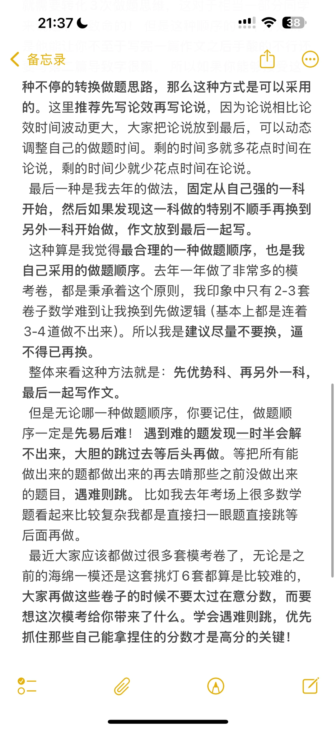 最近大家应该都做过很多套模考卷了,无论是之前的海绵一模还是这套挑灯6套都算是比较难的,大家再做这些卷子的时候不要太过在意分数,而要想这次模考给你带来了什么。学会遇难则跳,优先抓住那些自己能拿捏住的分数才是高分的关键!