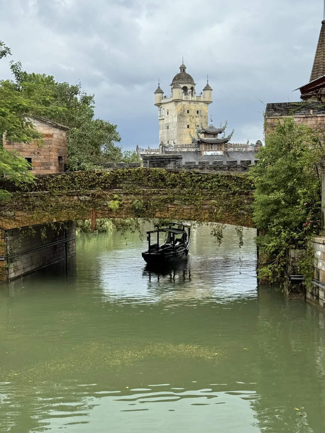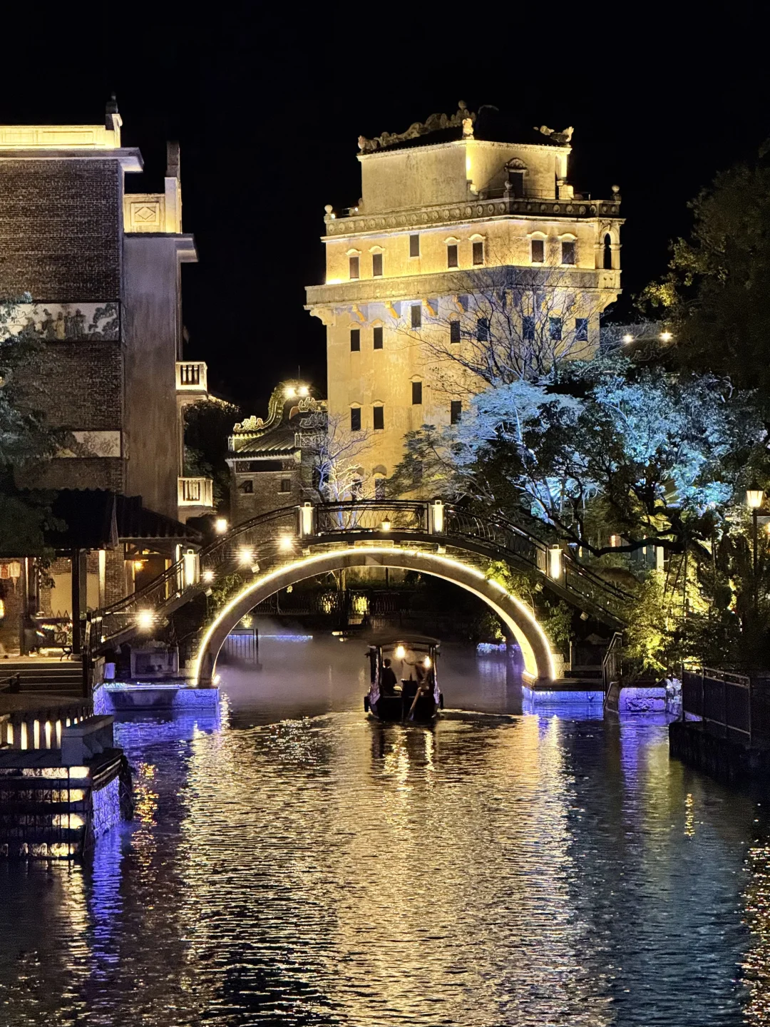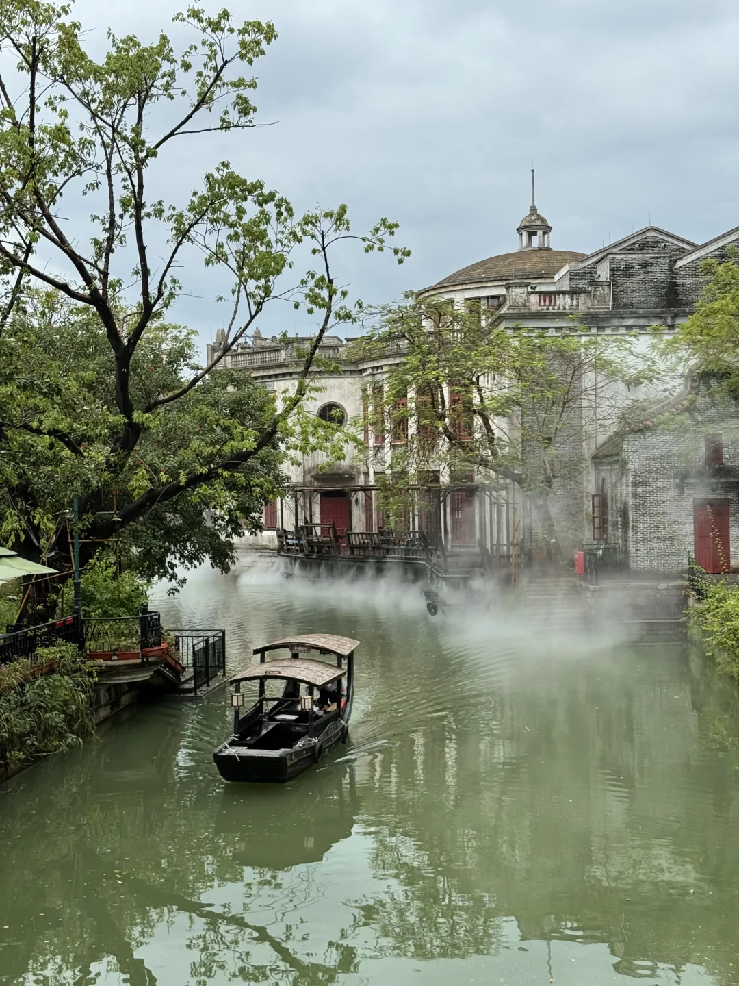 🛶摇橹船:摇橹入江南,看两岸骑楼、古桥映在水面,岸边定时喷雾,清凉又出片
