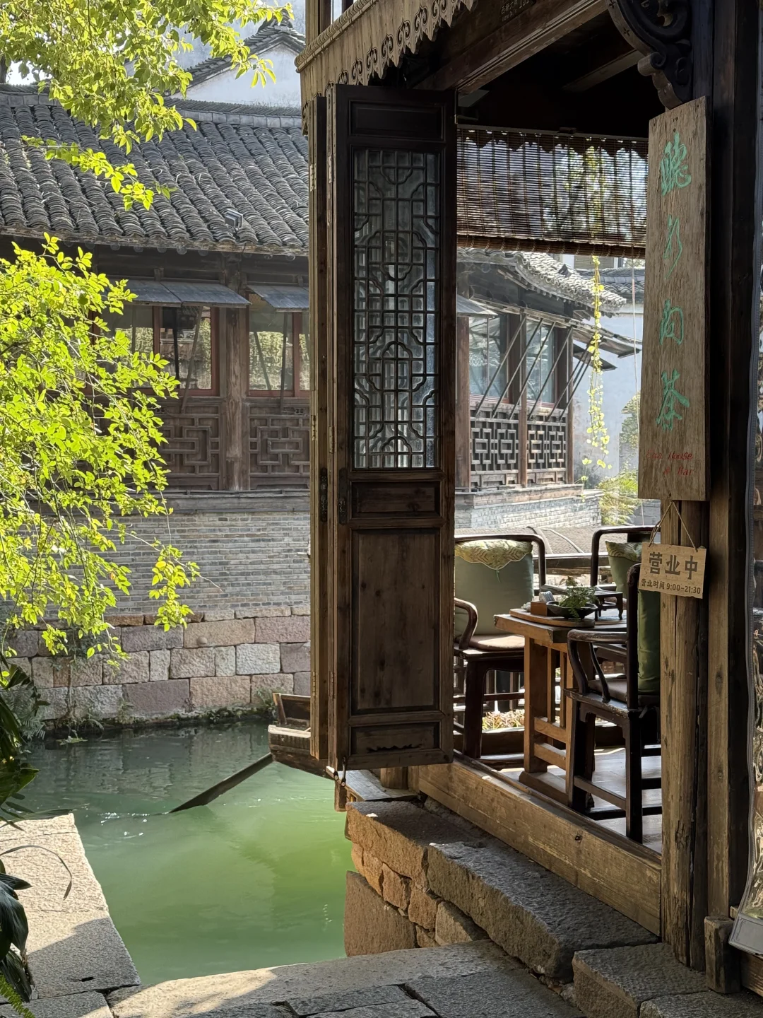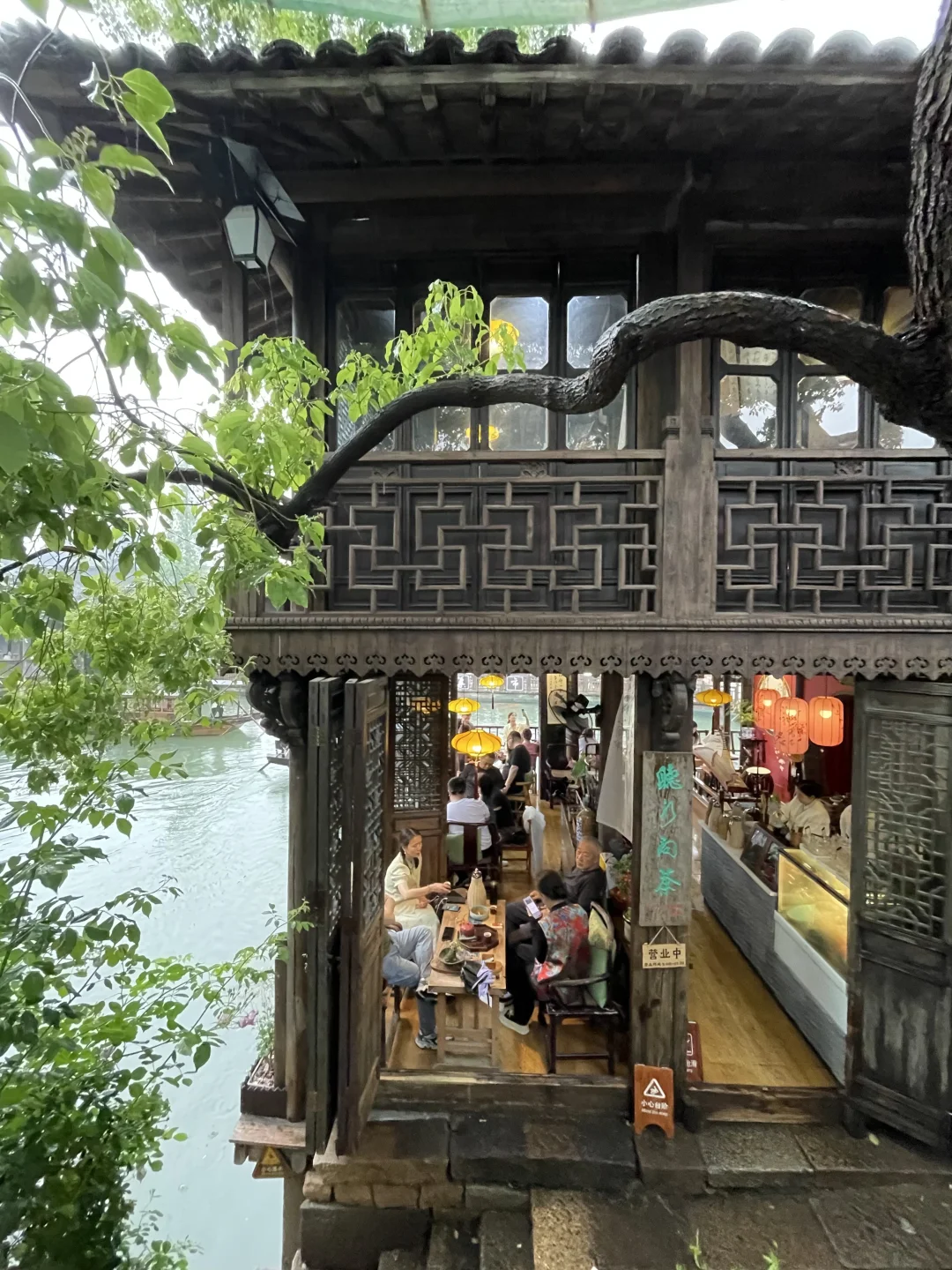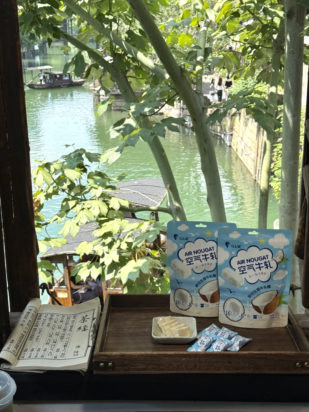 忽雨忽晴的乌镇 满足了我对江南水乡的所有幻想 摇橹船晃晃悠悠, 青石板路湿漉漉的, 小桥流水,细雨濛濛 这次真的被困在烟雨江南里了 喜欢在乌镇的茶馆里,吹吹风,喝喝茶。 这次带的马大姐空气牛轧糖,椰香味我超爱!尝一口,品一杯清茶,静静感受这江南水乡的温柔。