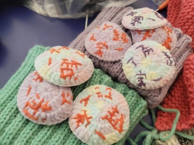 “江越一家亲”字样毛衣胸花通讯员供图