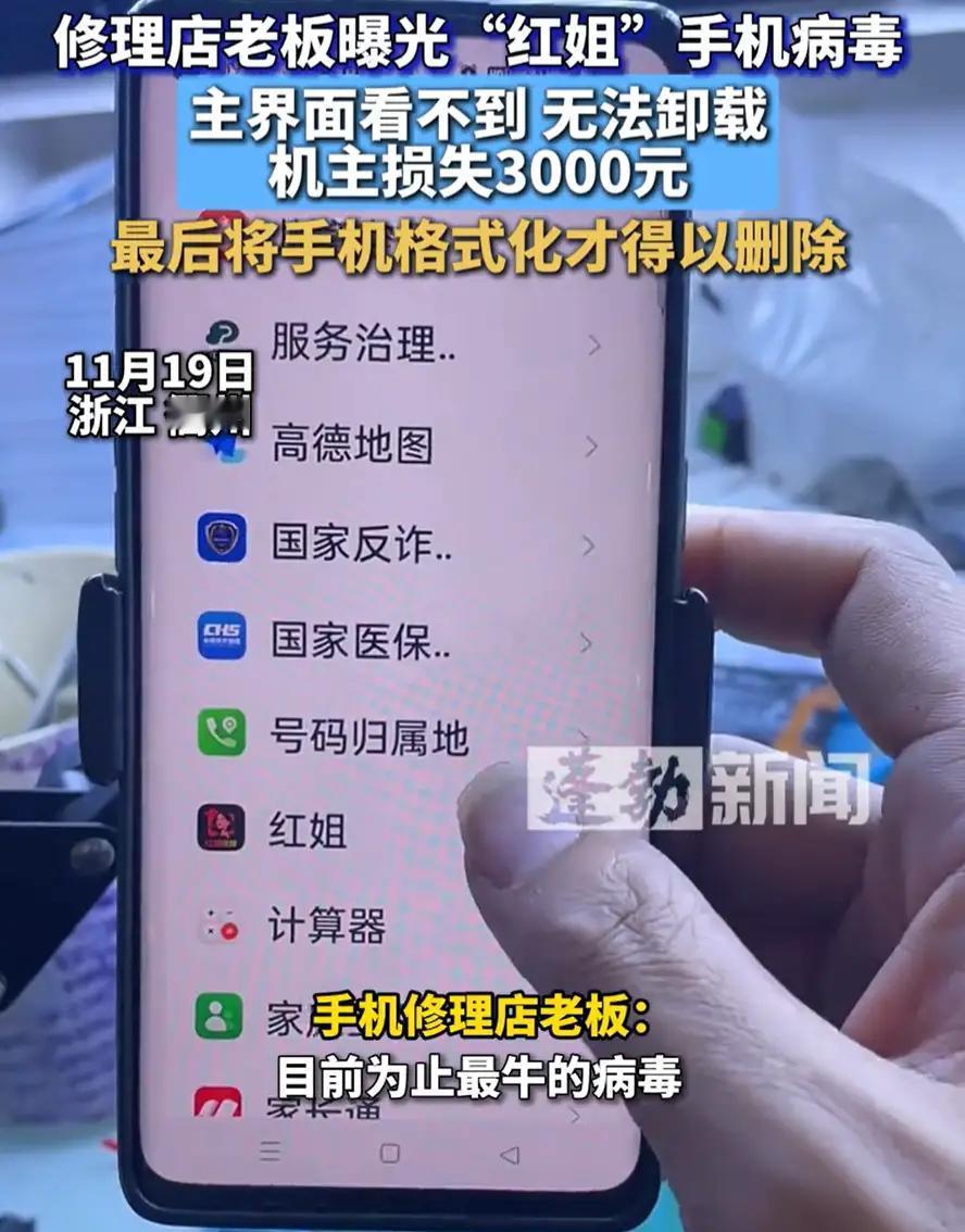 浙江衢州,一老人发现手机平白无故损失了3000块钱,家里人检查了半天也找不出原因,最后只能把手机送到维修店。店里的老板一看就指出,这是中了“红姐”病毒,随后发视频将这个套路进行曝光。 据了解,老人平时仅用手机接打电话、浏览短视频,从未进行过线上转账操作。 家人得知后,逐一检查手机支付记录、登录设备及短信通知,却未找到任何转账痕迹,手机也未出现异常弹窗或卡顿现象。“我们反复核对了微信、支付宝和银行卡账单,都查不到资金流向,实在没办法才想到送修。”老人的家人无奈说道。 维修店老板接过手机后,他发现手机后台隐藏着一款名为红姐的恶意软件,该软件通过伪装成实用工具或福利链接诱导用户下载,一旦安装便会窃取支付密码、验证码等敏感信息,进而悄无声息地转移账户资金。“这种病毒作案手法隐蔽,转账记录会被自动删除,很难被发现。”老板一边演示病毒的运作机制,一边向家人解释。 随后,老板将红姐病毒的套路拍摄成视频发布到网络,提醒市民尤其是老年人提高警惕,呼吁大家不随意点击陌生链接、不下载非官方应用,定期检查手机安全状态。