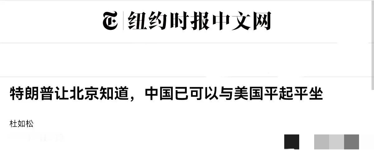 纽约时报刊文表示,特朗普让北京终于知道一点,那就是中国已可以与美国平起平坐!11