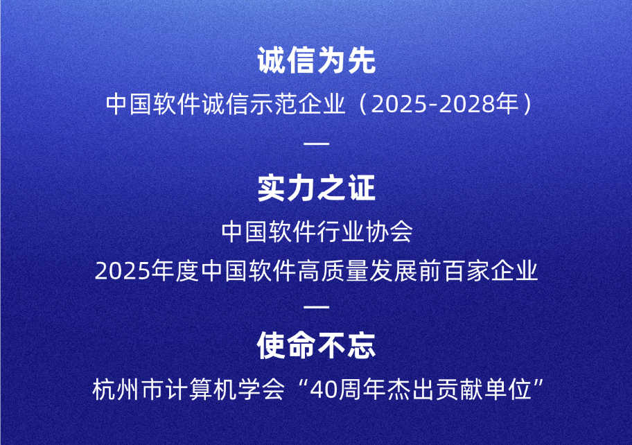 近日,信雅达·SUNYARDAI荣获“2025年度中国软件高质量发展前百家企业”“中国软件诚信示范企业(2025-2028年)”“杭州市计算机学会40周年杰出贡献单位”三项业界权威认可。