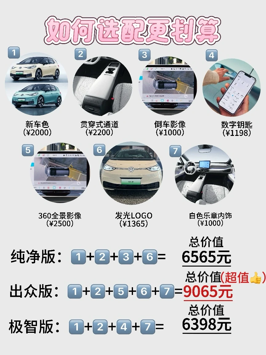 25 款上汽大众ID.3的出众版我觉得升级的内容更多,配置价值也高达9065元